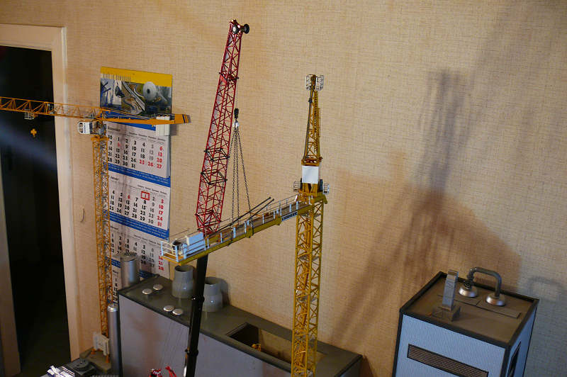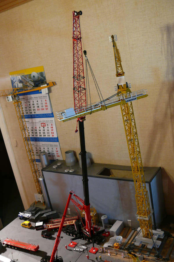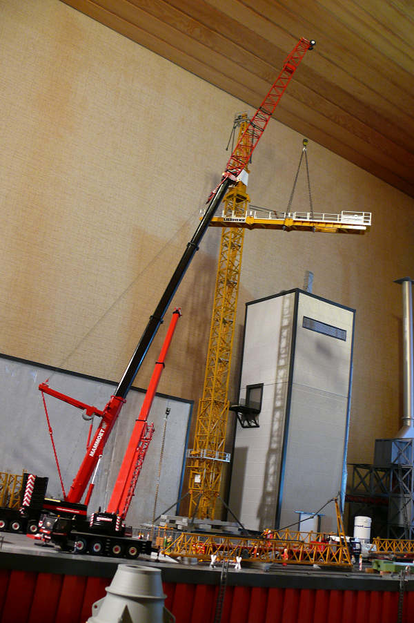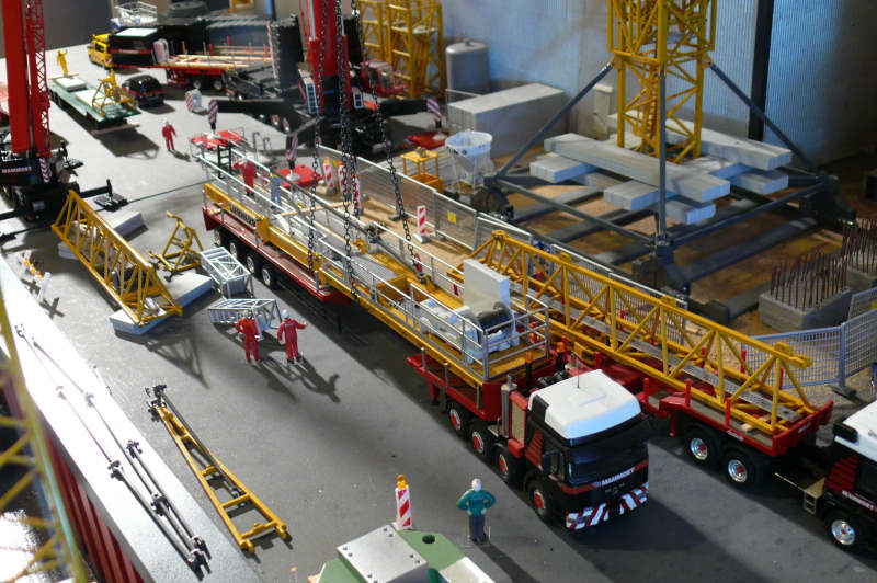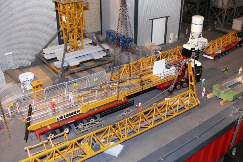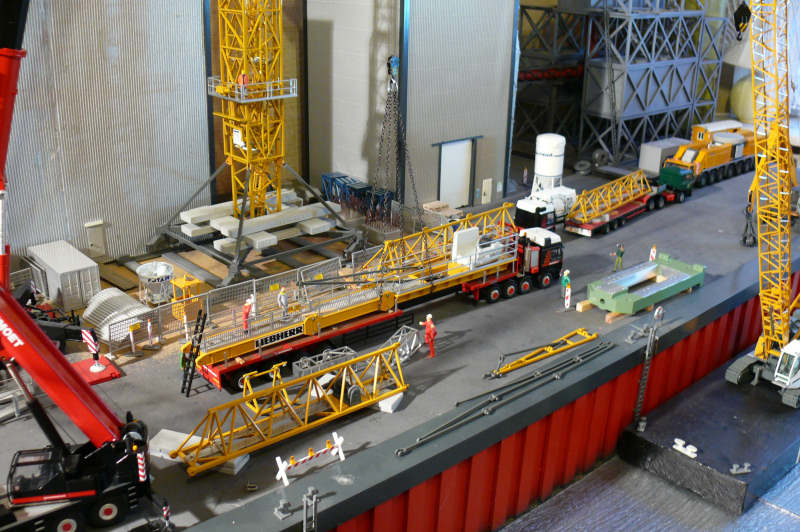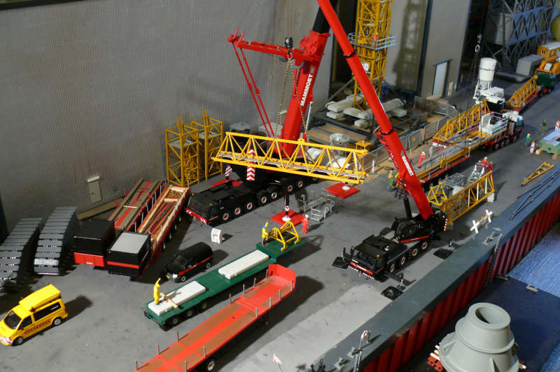 Im Hintergrund laufen schon Verladearbeiten, auf bereitgestellte Auflieger von Thömen und Mammoet.