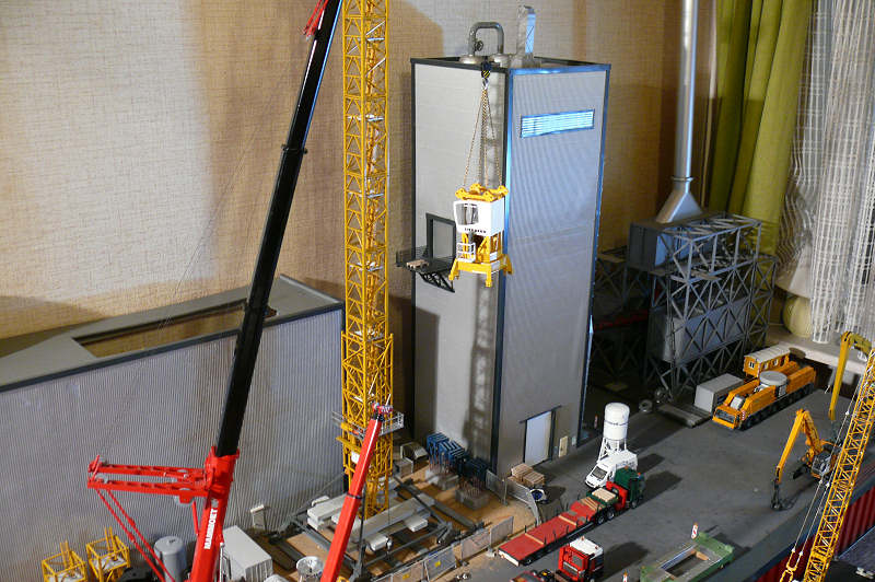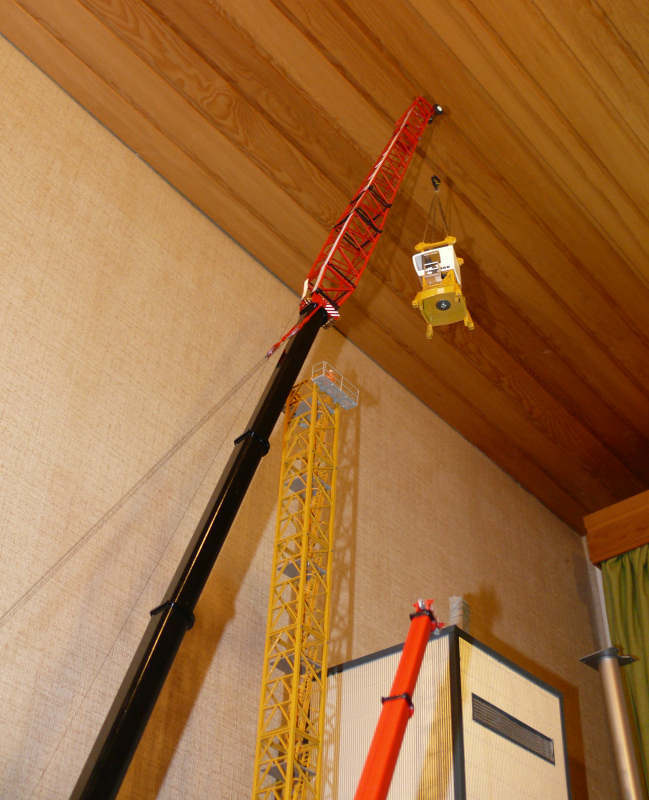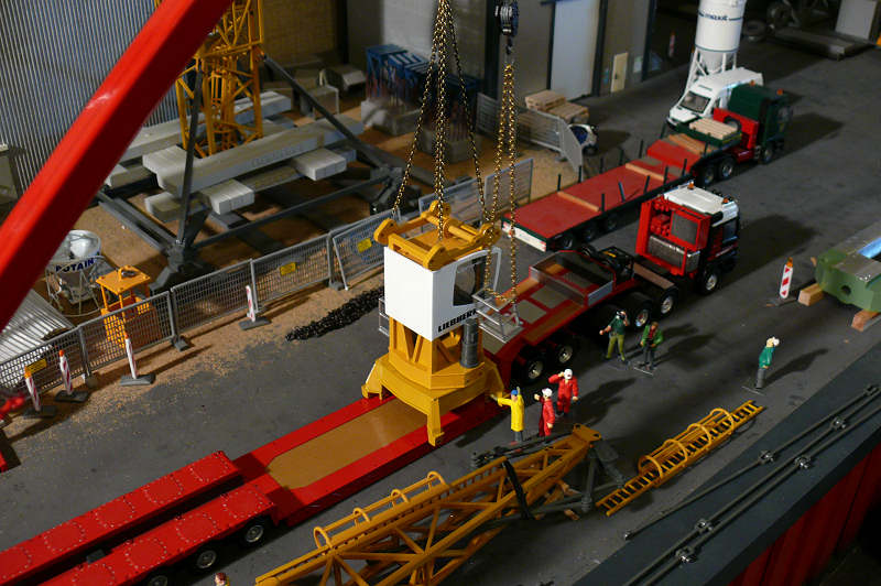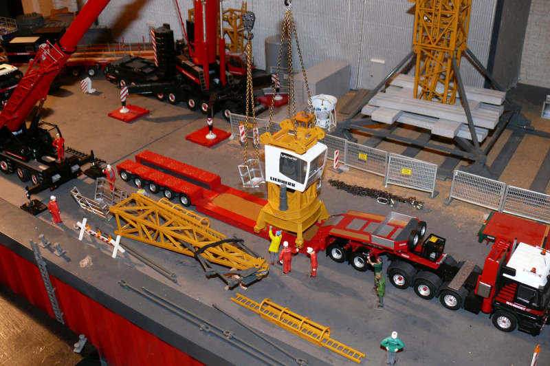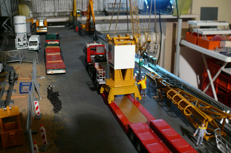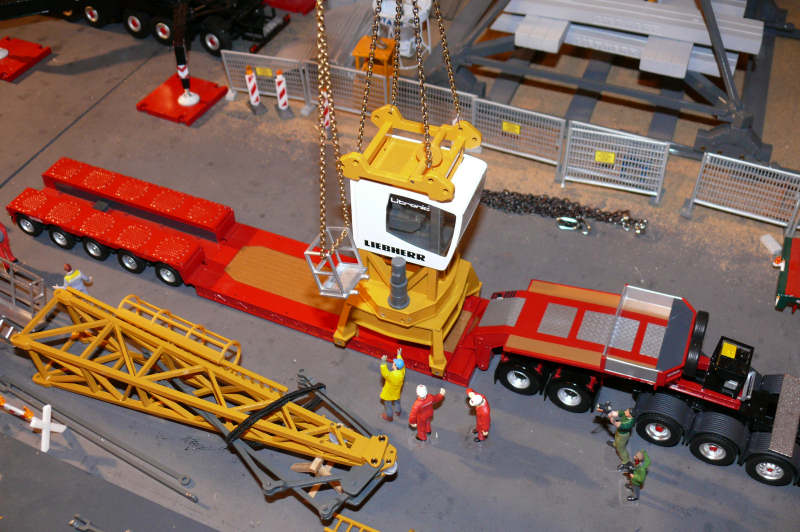Bevor die Kabine auf den Tieflader abgelegt werden kann, müssenn erst noch Teile abgebaut werden.