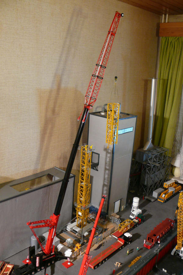 Derweil ist der Tieflader mit den beiden Turmteilen auch fahrbereit