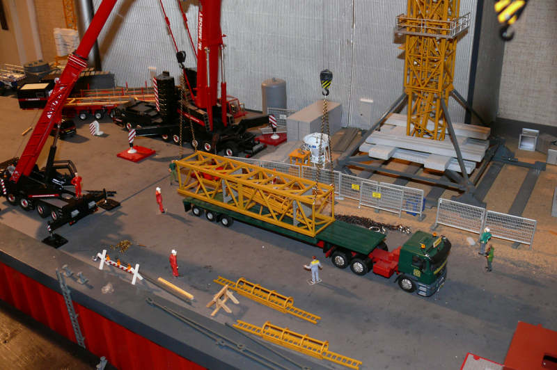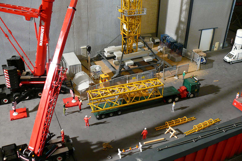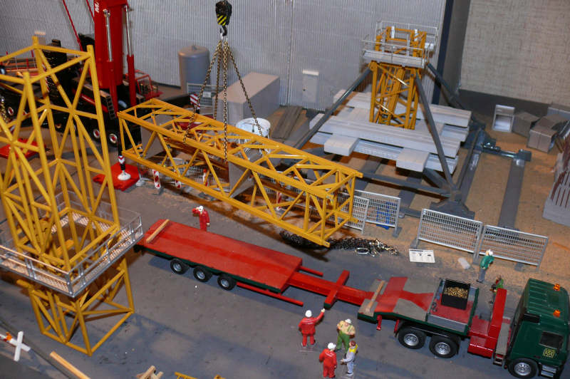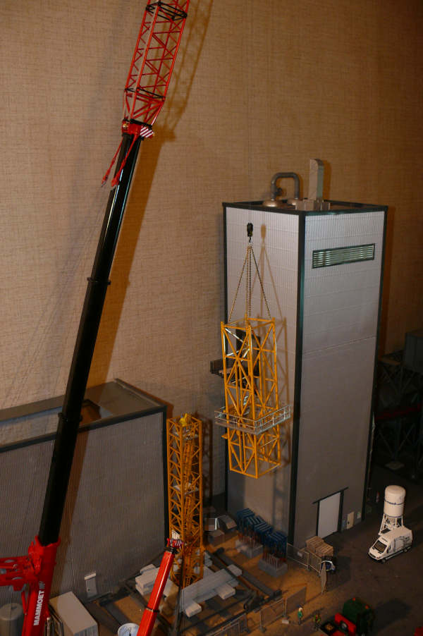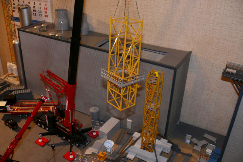 Die Kletterglocke wird ersteinmal abgestellt und danach das letzte Turmsegment demontiert und verladen.