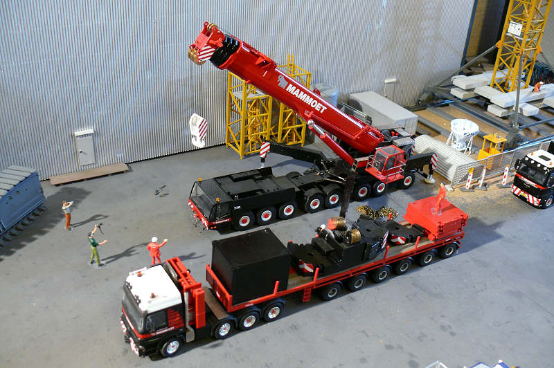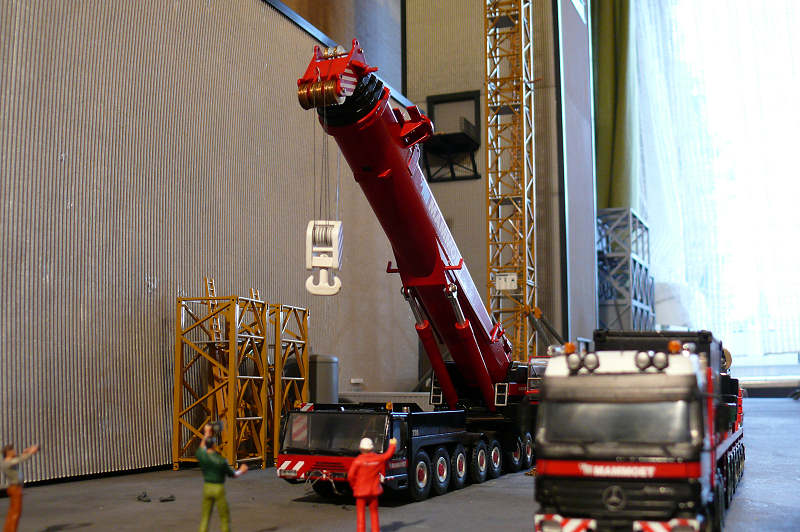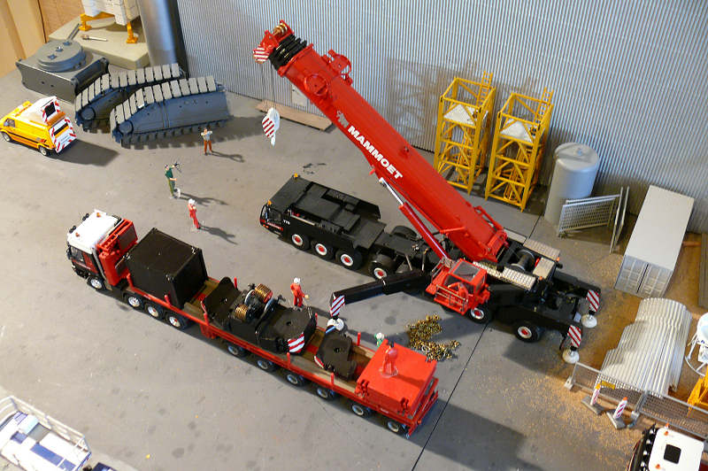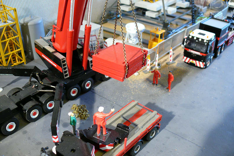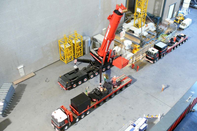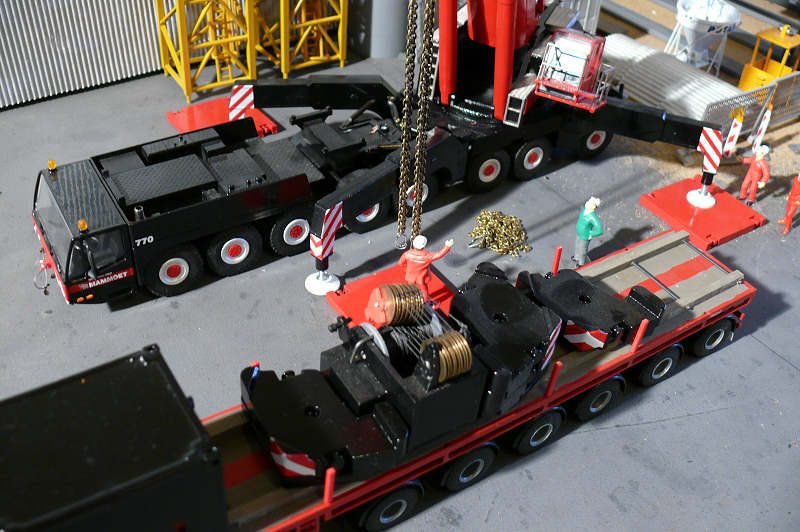 Zunächst werden die hinteren beiden Matten gelegt, dann wird der Kran neu abgestützt
