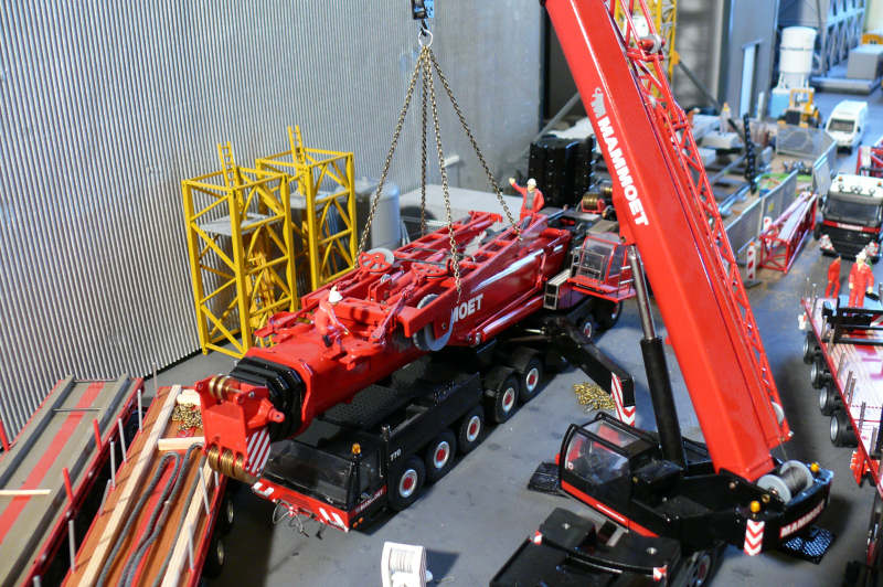 vorsichtig wird der SSL abgelassen und an den Aufnahmen verbolzt, danach werden alle anderen Verbindugen hergestellt.