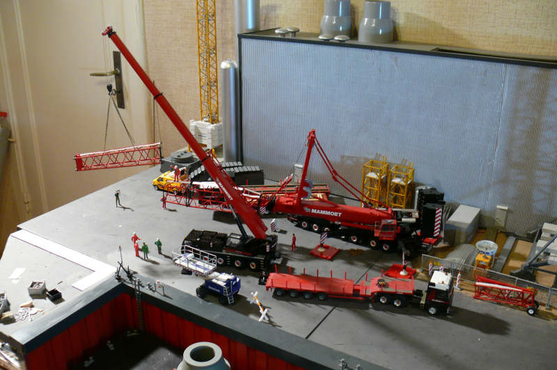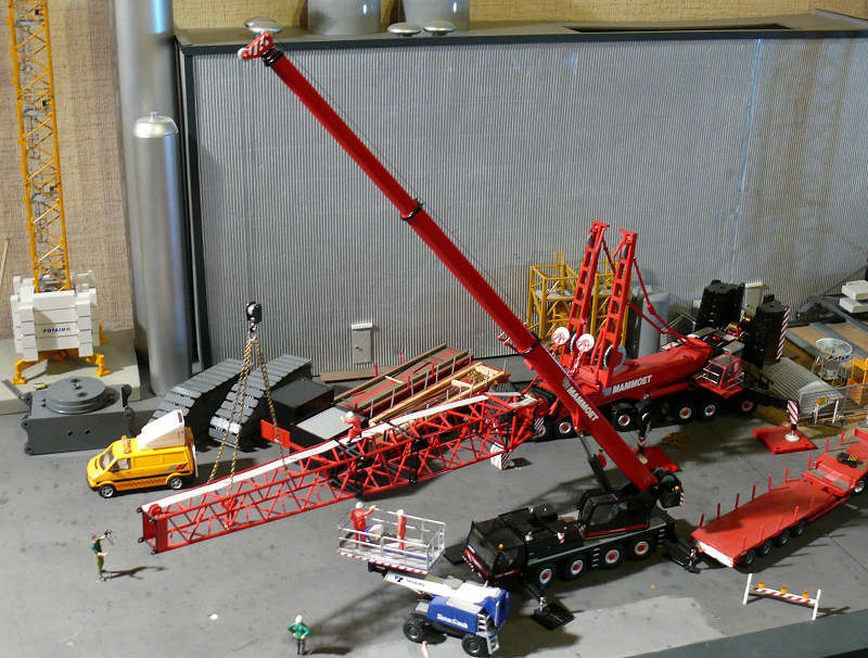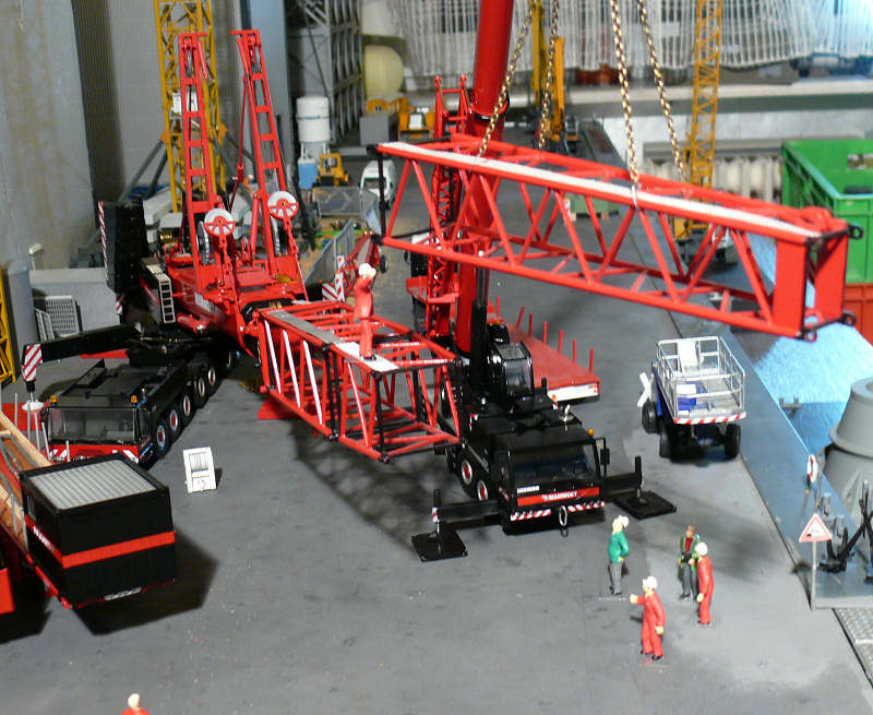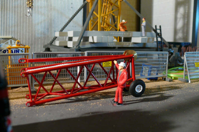 Bevor der Hilfskran umsetzt um den Rollenkopf zu montieren, wird selbiger erst einmal in Reichweite geholt.