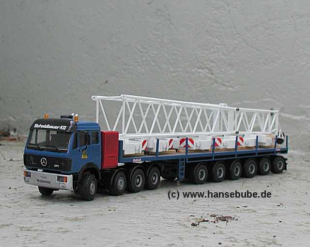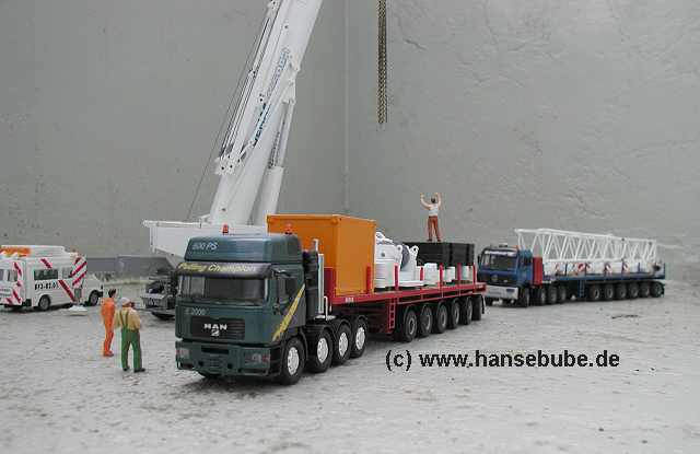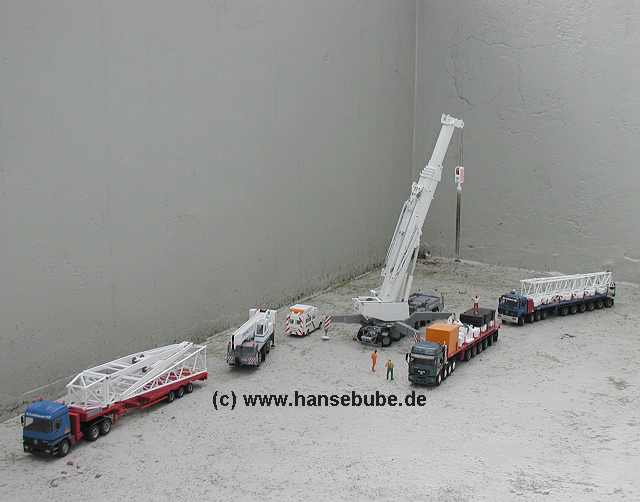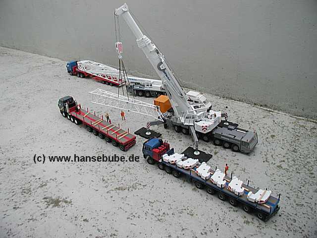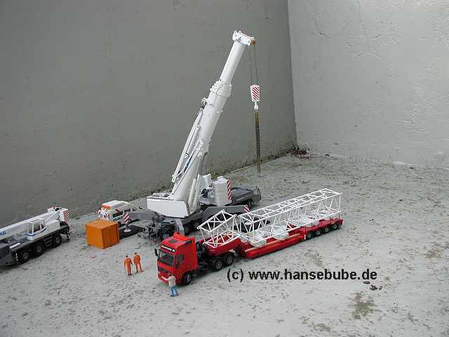 Ein weiterer Tieflader mit Gitterteilen und 40 t Ballast trifft ein .