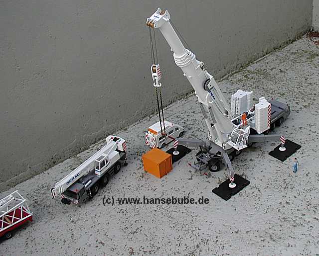 Der Kran hat jetzt 160 t Ballast aufgenommen und verbolzt