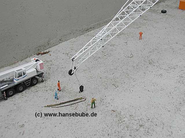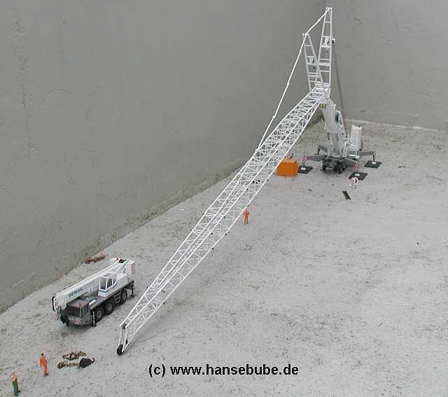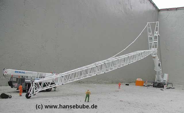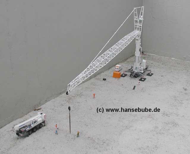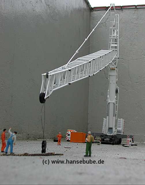 Nun ist der Kran ,praktisch zugbereit , die Wippspitze muß nur noch in Arbeitsstellung gebracht werden