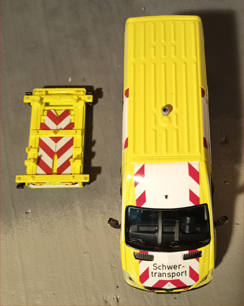 Da es sich um die Original Warnanlage von WSI handelt ist sie in der gedrehten 90 Grad Stellung zu breit und ragt seitlich über das Fahrzeug.