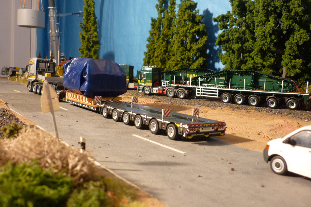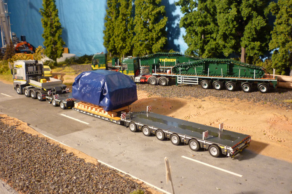 MB 4158 Actros SLT Titan mit Broshuis 2-6 SL Tieflader und Ladung