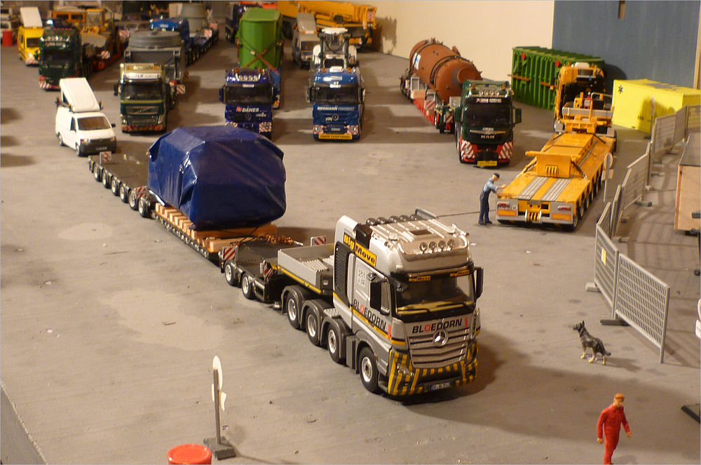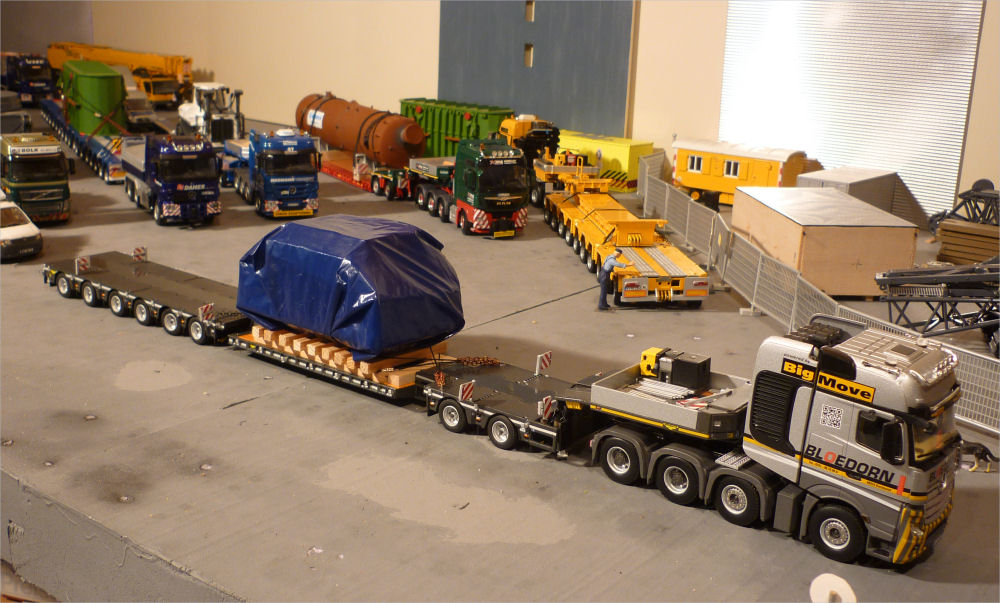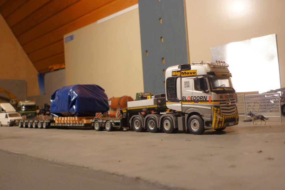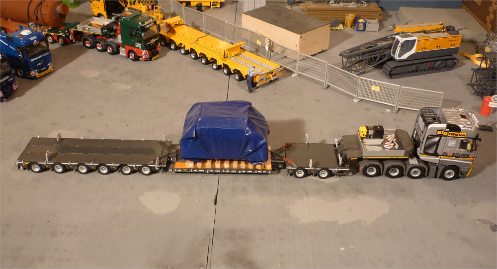 MB 4158 Actros SLT Titan mit Broshuis 2-6 SL Tieflader und Ladung