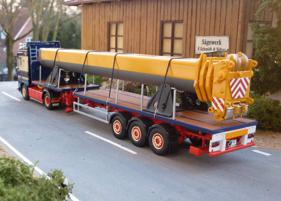 ausziehbarem, Flachbettauflieger. Ein Modell wie es durchaus dem Vorbild entspricht.