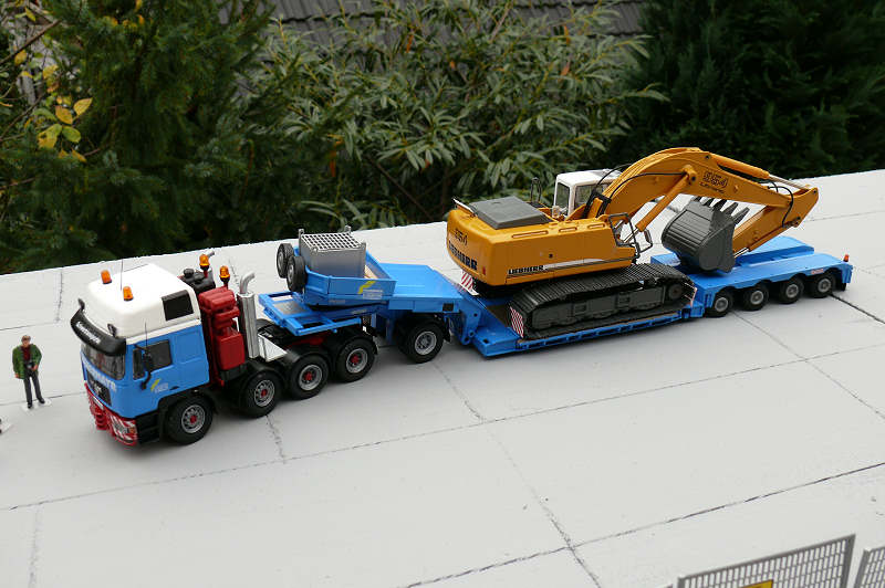 Das Modell erhielt neue Auspuffrohre und diverse Kleinteile, die Aufliegerkombination wurde aus Conrad Teilen zusammengestellt.