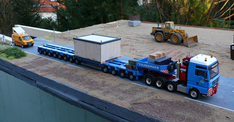 Hier noch zwei Bilder vom Transport eines Maschinenrahmenteiles: