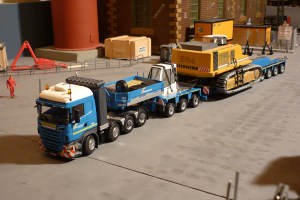 Der Bagger wurde geteilt transportiert, dies ist bei Baumaschinen dieser Größe im Original aus Gewichtsgründen nötig.