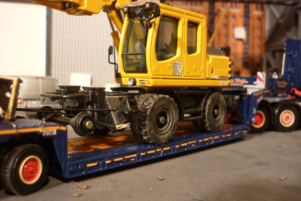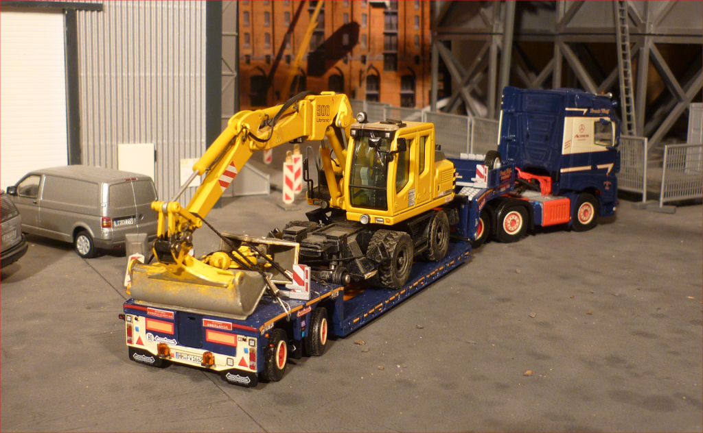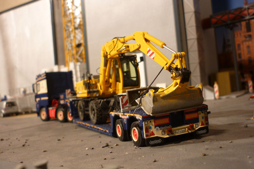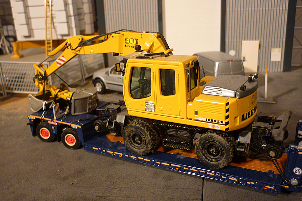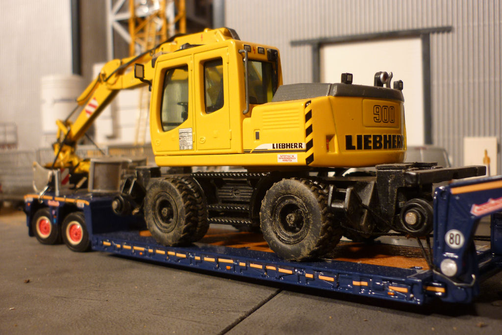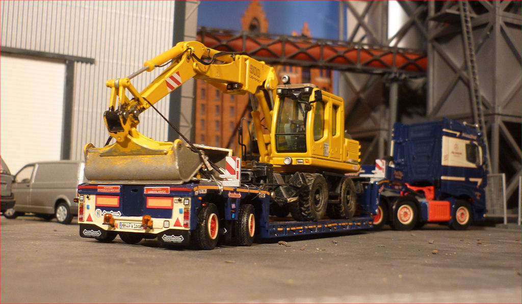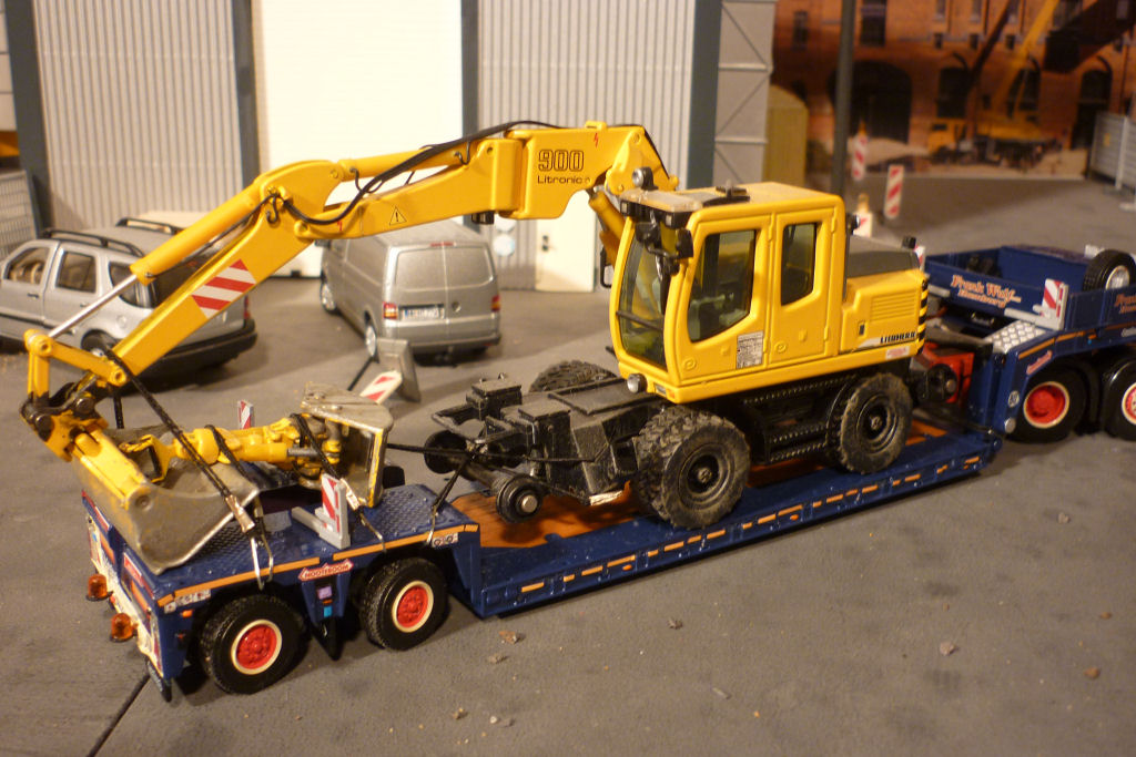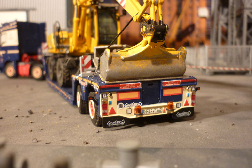 mit Nooteboom 2 achs PX Tieflader und Baggertransport