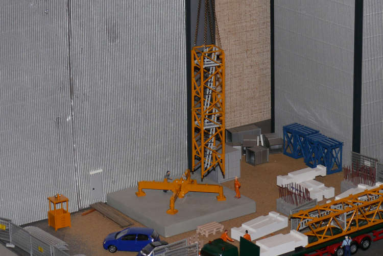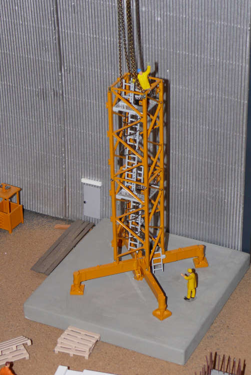 Das Turmstück steht, die Anschlagmittel werden gelöst