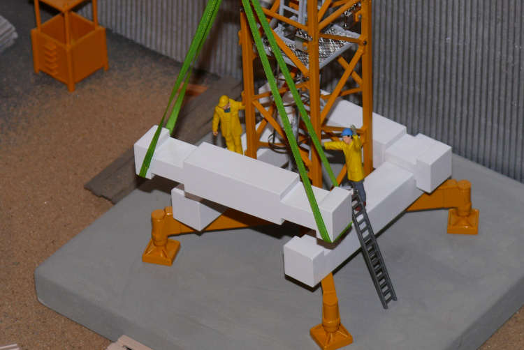 Zunächst werden die beiden Ballastgrundteile auf das Fundamentkreuz gelegt