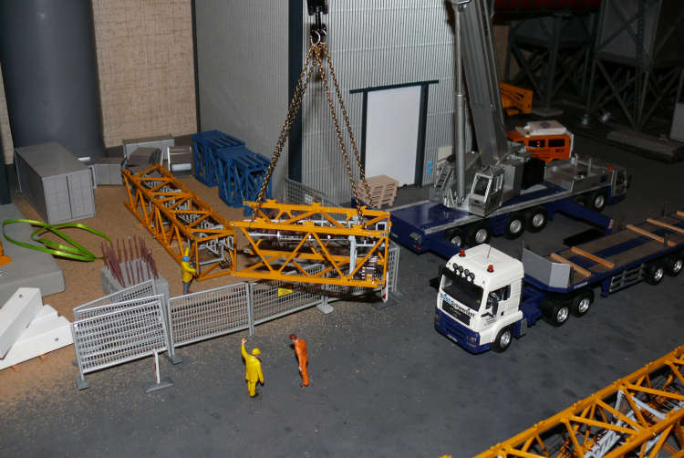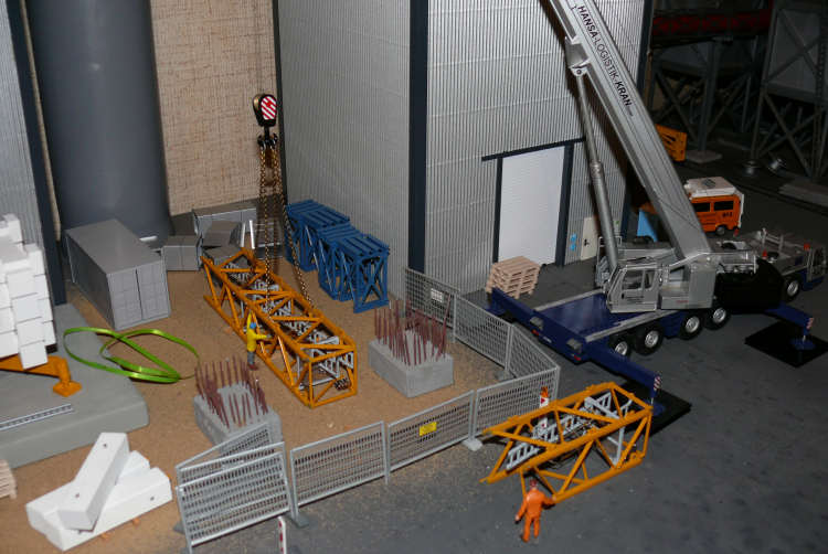 Auch das überflüssige Teil schwebt auf die Baustelle