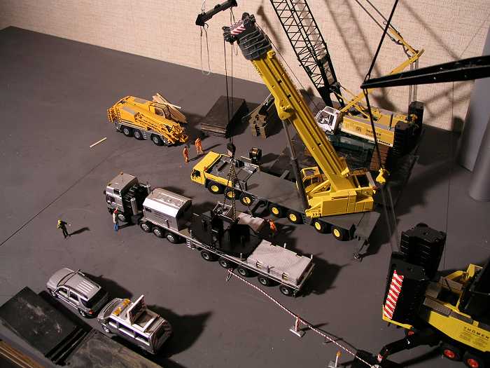 Die Matten werden ausgelegt, benötigt werden nur zwei, denn mit den rechten Stützen steht der Kran