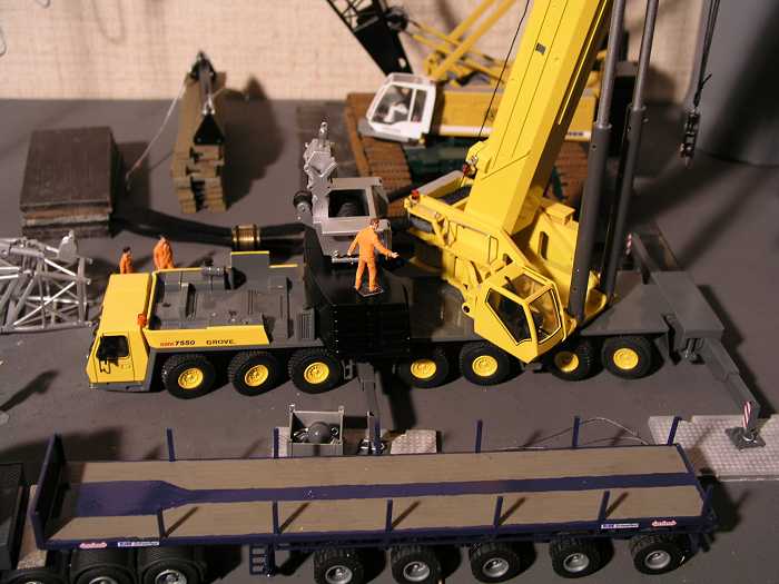 Nachdem die Winde auf der Grundplatte verbolzt wurde dreht der Kranoberwagen, um den Ballast aufzunehmen