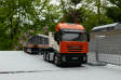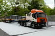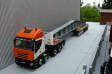 mit verschiedenen Aufliegern eingesetzt. Meist sind die Kombinationen mit Betonfertigteilen