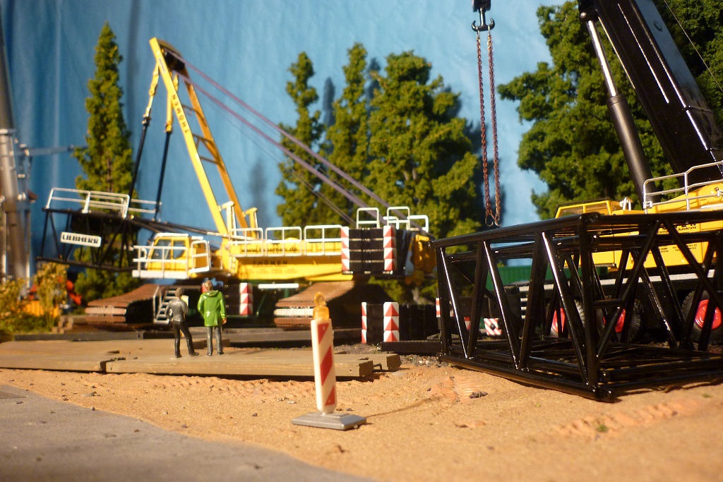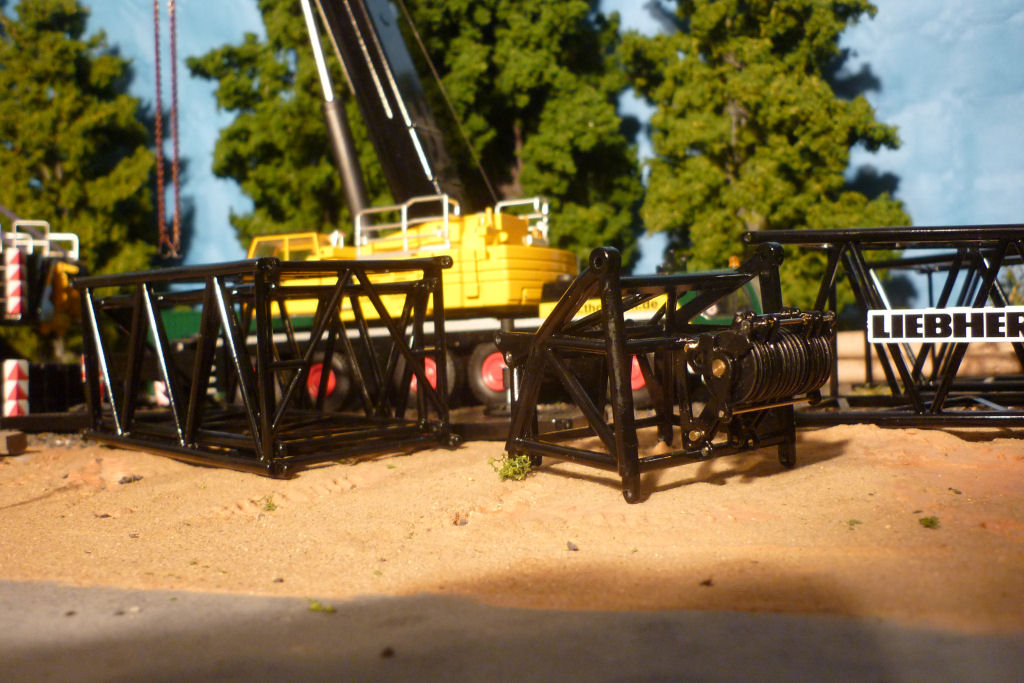 Die Bilder zeigen den Kran beim Aufbau mit montiertem Hauptausleger