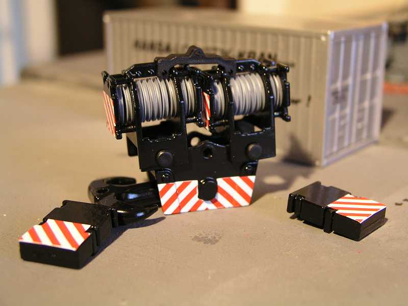 Die 600 t Flasche hat zwei bbnehmbare Gewichte an der Seite, und die Rollenblöcke