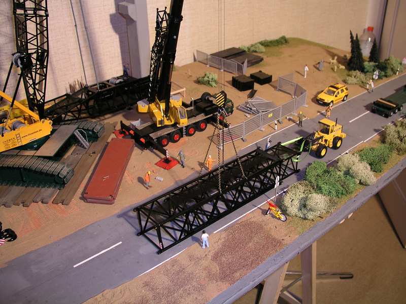 Mit Hilfe des Radladers wird das 14 m L Auslegerteil aus dem S Teil herausgezogen