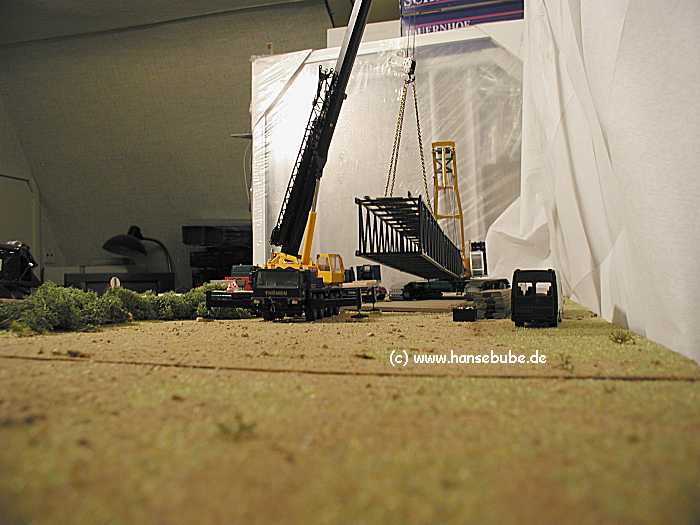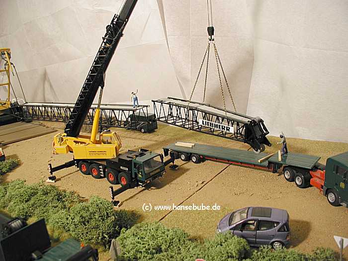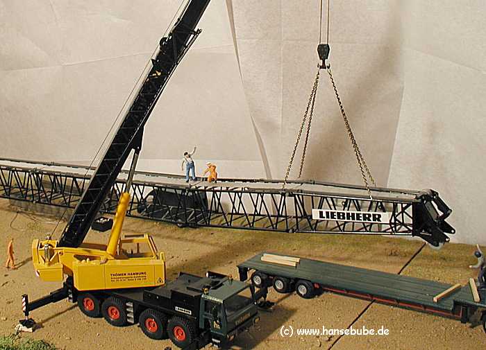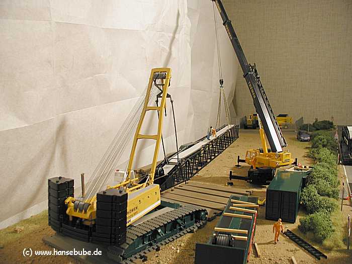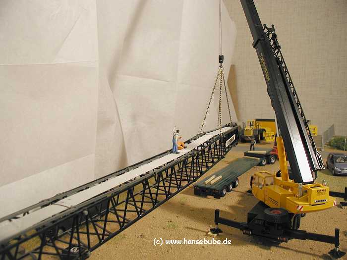 Nur die Abspannstangen noch alle miteinander verbinden und der Ausleger kann aufgerichtet werden