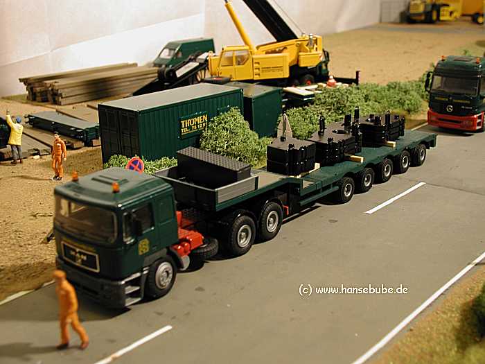 Immer mehr Tranporter treffen ein ,hier ein Tieflader mit Oberwagenballast