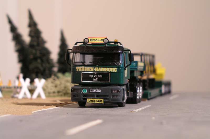 Der dritte Zubehörtransport steht etwas hinter der Baustelle