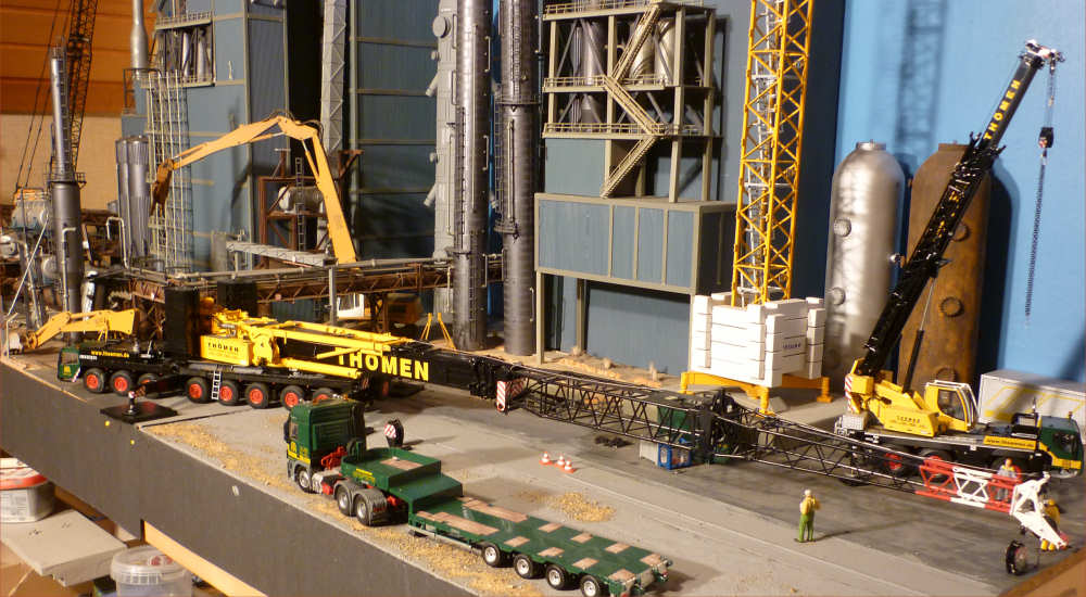 Der Kran steht hier für Montagearbeiten an einem Tdk auf dem Revisionsgelände der BUNI Raffinerie.