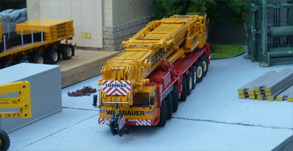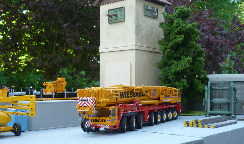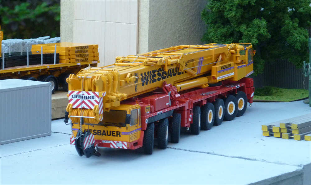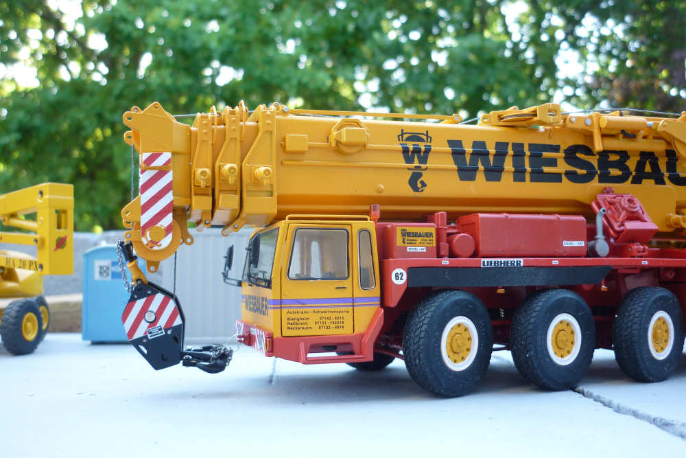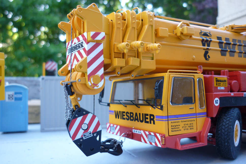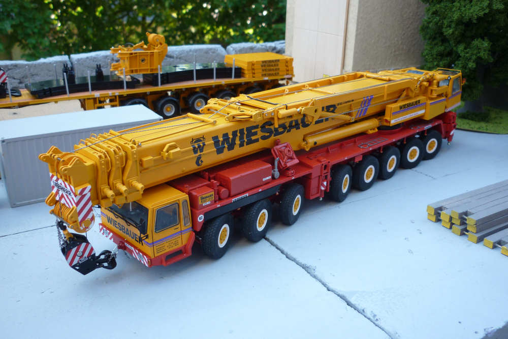 Das Modell kommt mit 3, 7 und 11 rolliger Hakenflasche, 125 t Ballast und Abstützmatten.