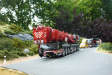 Bei der Variante mit 84 m Mast werden die vorderen Teleausschübe separat auf einem Tieflader