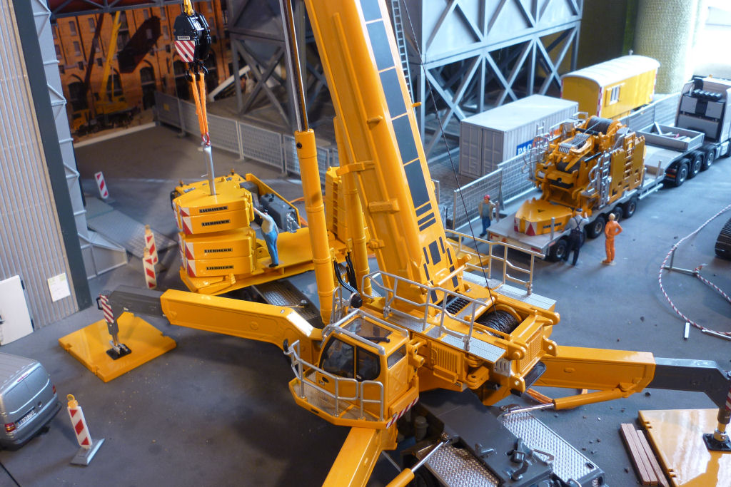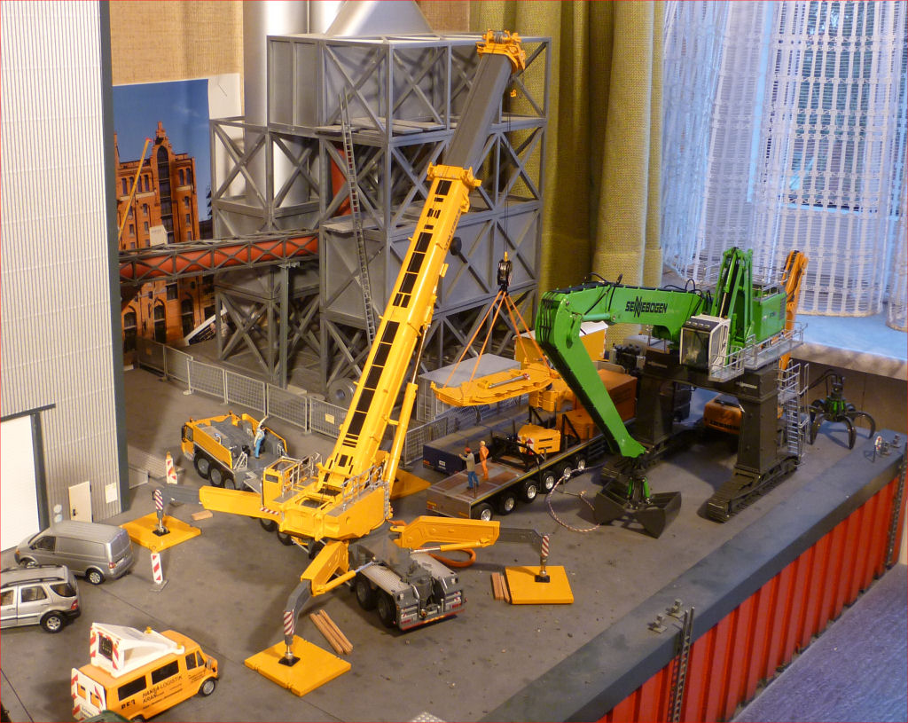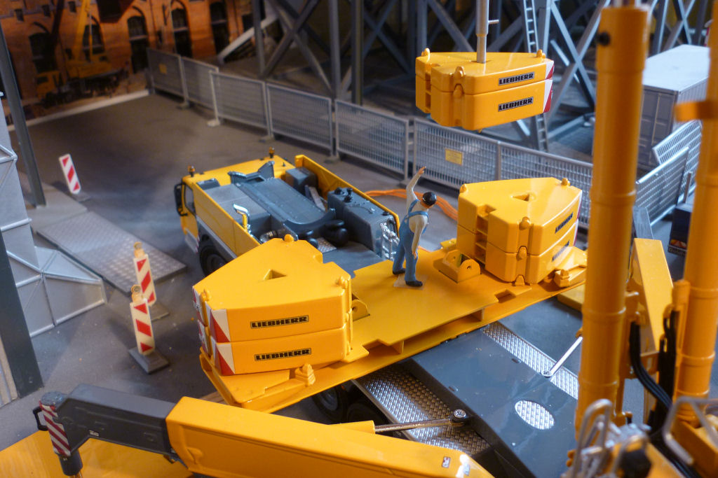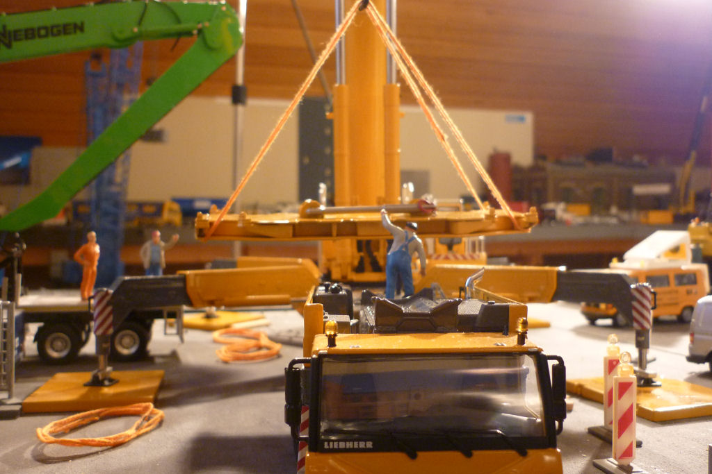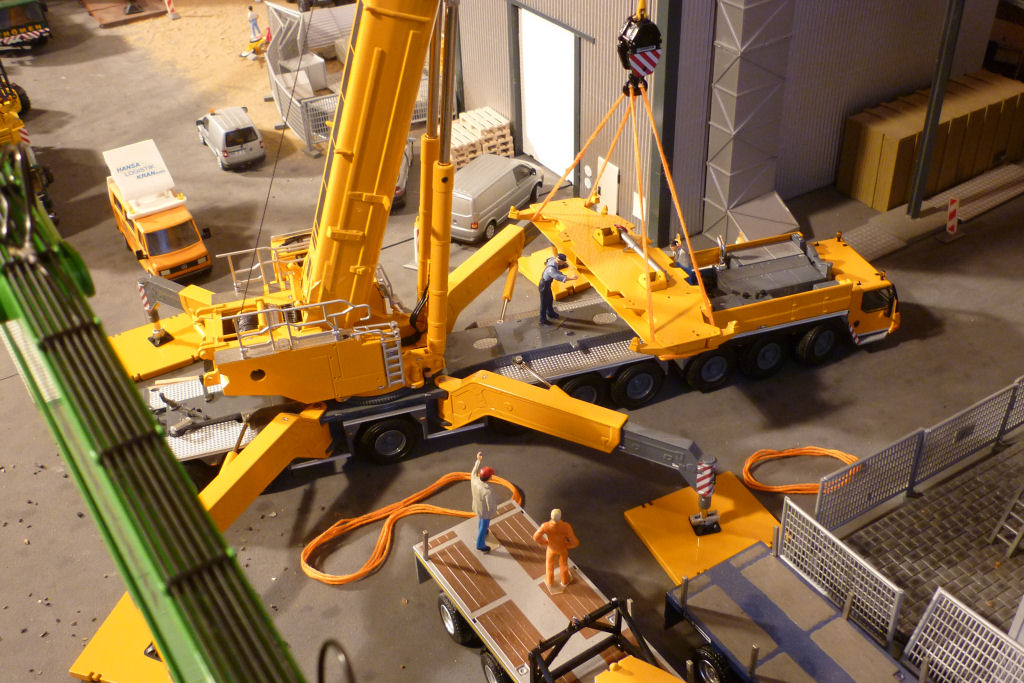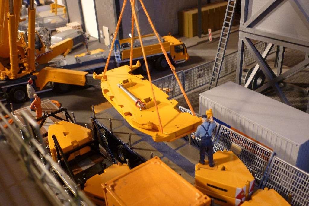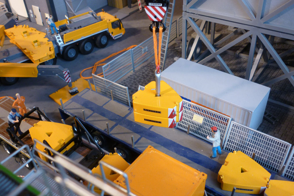Die Ballastgrundplatte auf dem Weg zum Kran, darauf liegend, der Ballastdorn, für die dreieckigen Ballaststeine.