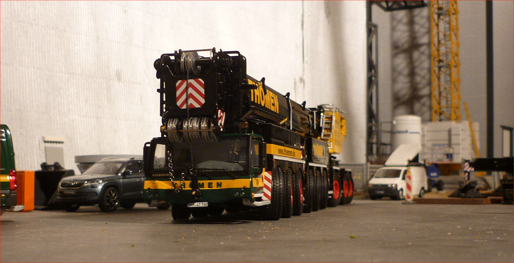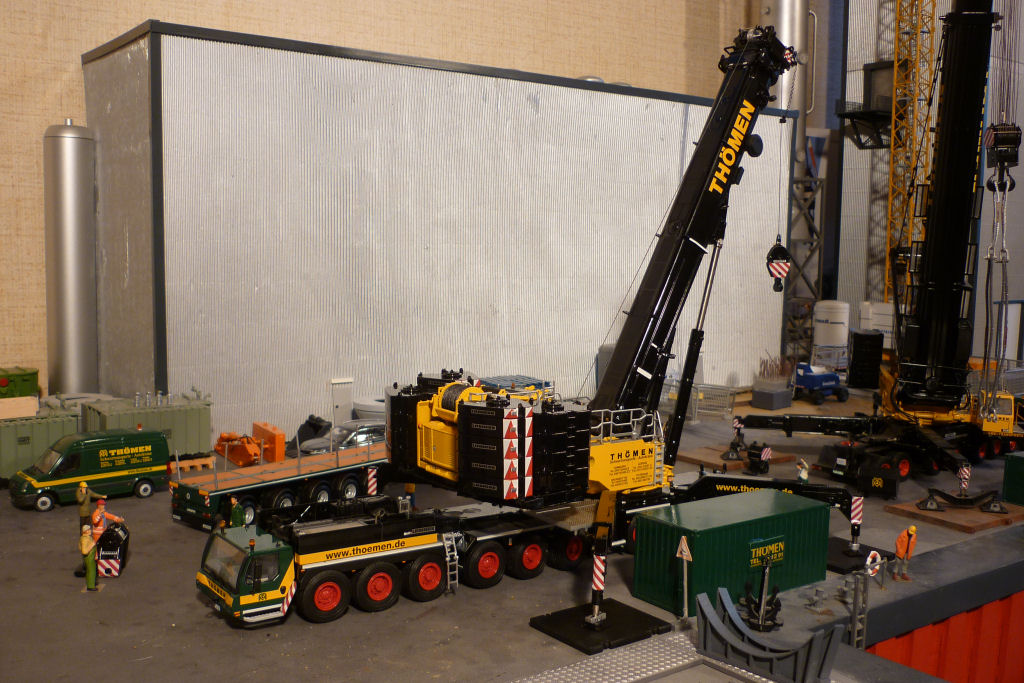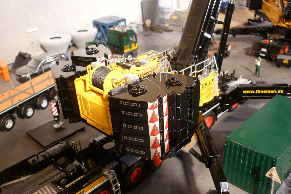 In dieser Bilderserie gibt es einige Bilder vom Kran mit vollem Ballast und großer Hakenflasche, aber ohne Abspannung...