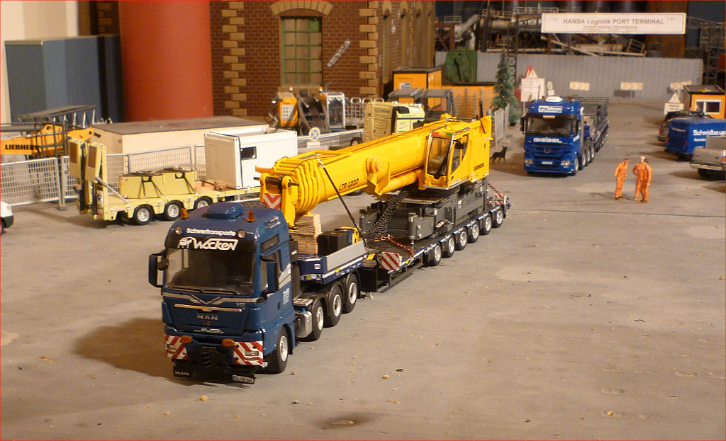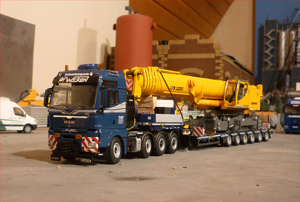 Als Zugmaschine kam eines meiner ersten WSI Modelle zum Einsatz, die MAN 41.680 TGX in Farben der Spedition Wocken.