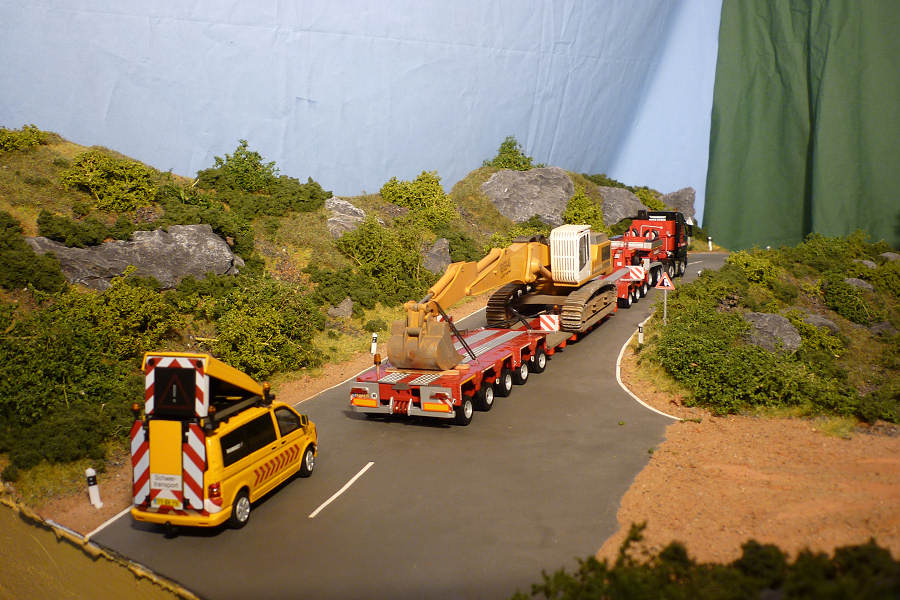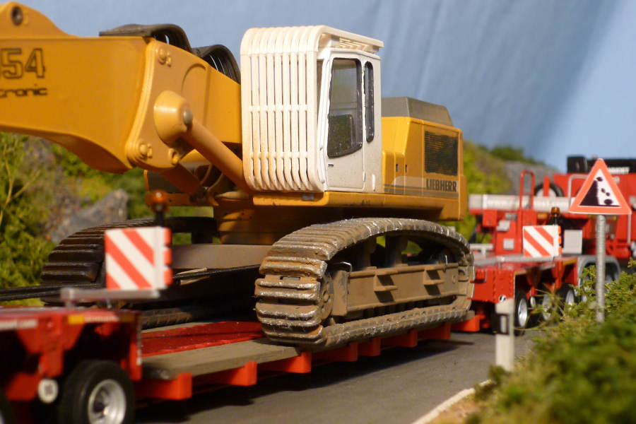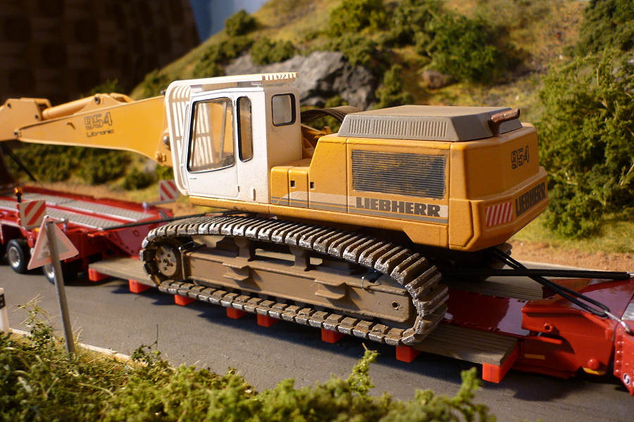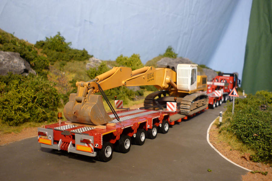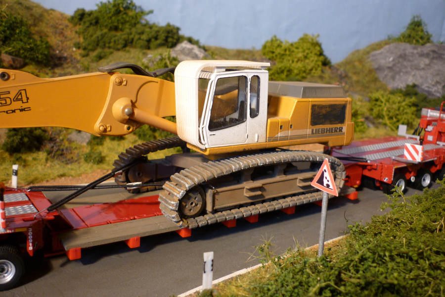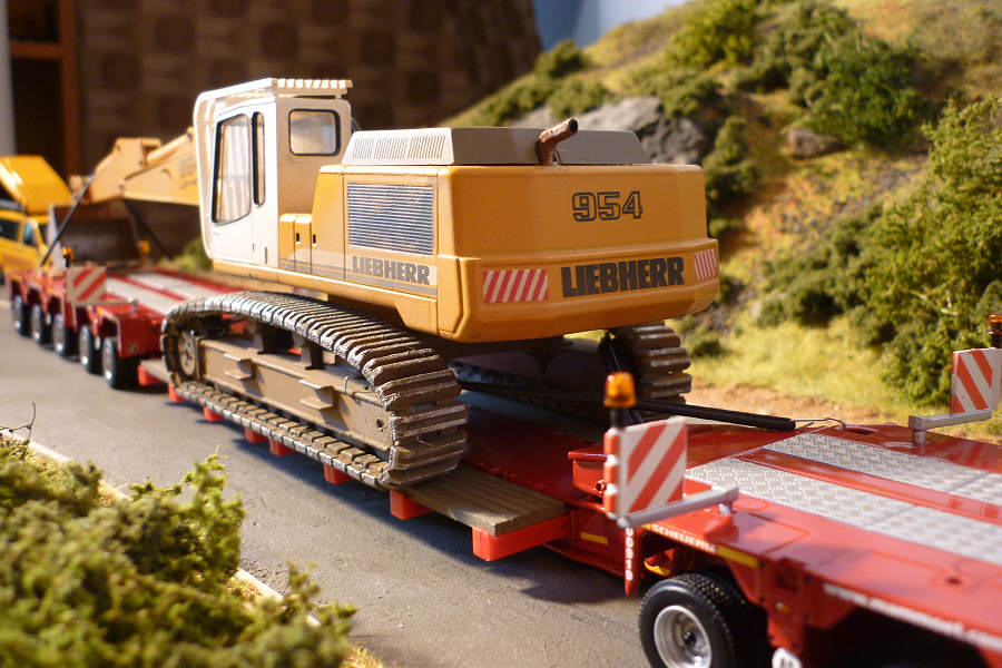 Volvo FH 12 mit Scheuerle 3/5 Baggerbrückenkombination und Abbruchbaggertransport