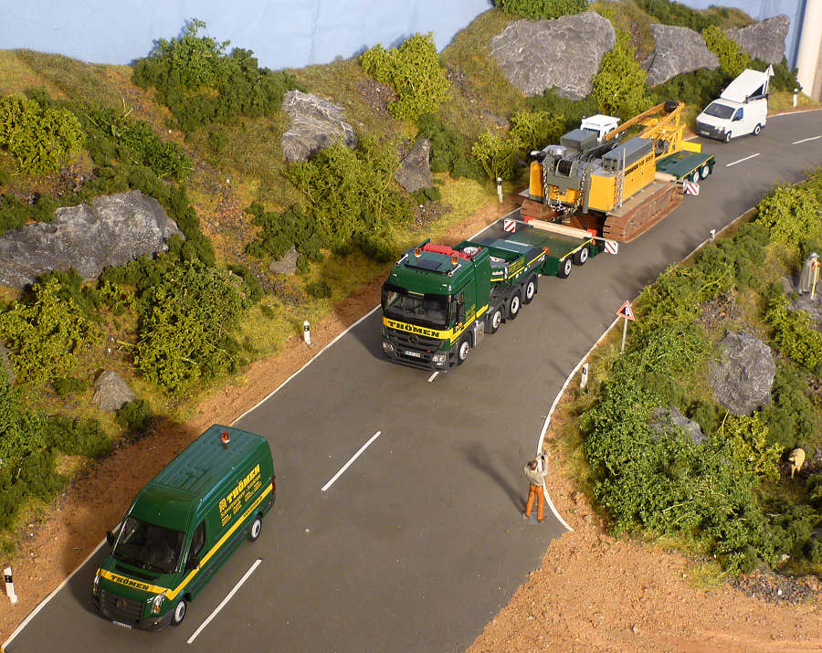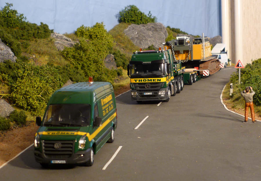 Als Begleitfahrzeuge sind der Thömen Werkstattwagen und ein angemietetes BF 3 dabei.
