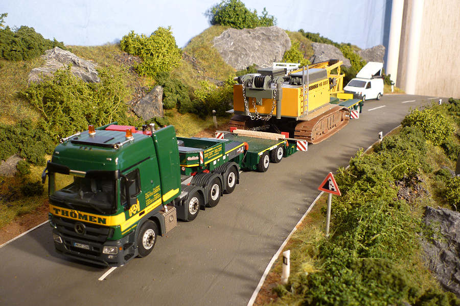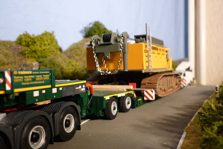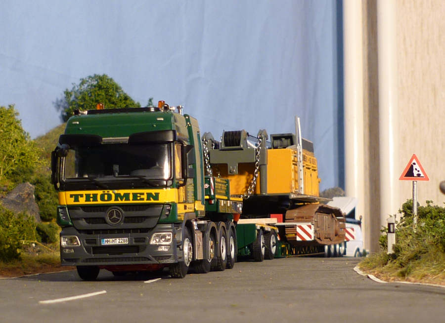 Transport eines HS 855 Seilbagger Grundgerätes durch Thömen, wie er auch im Original denkbar wäre,