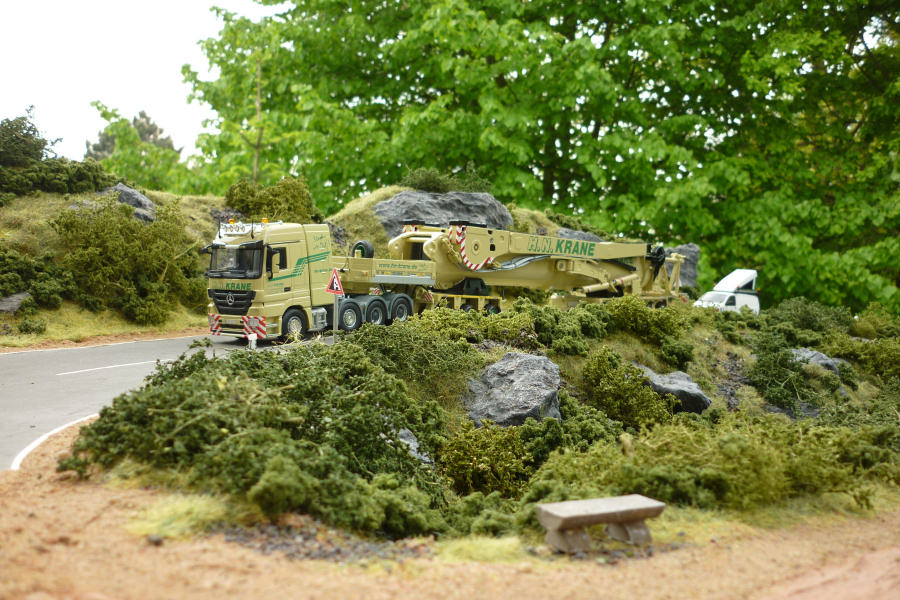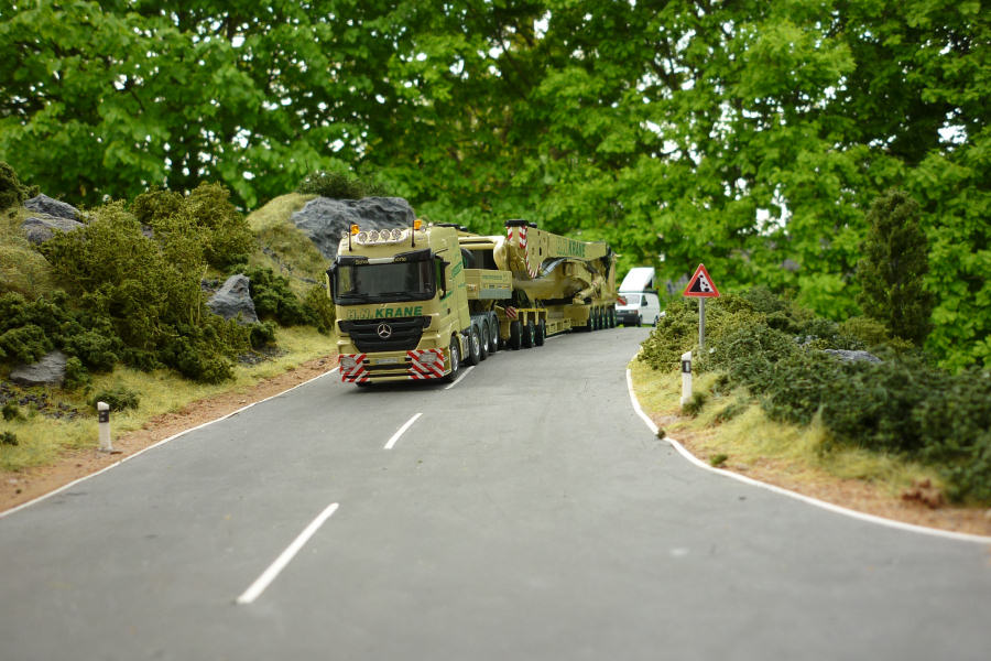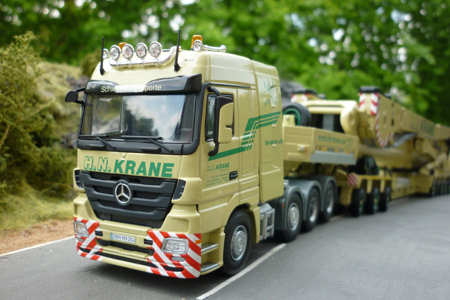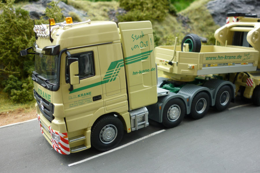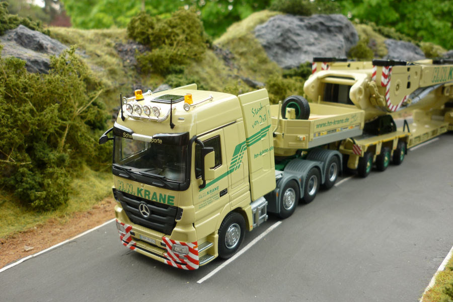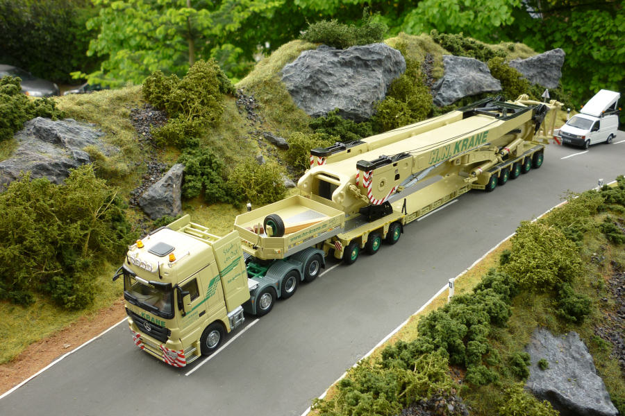 Hier wird der Telemast des LTM 11200-9.1 auf einem Goldhofer THP XLE 3/5