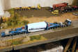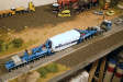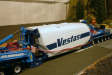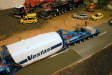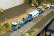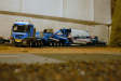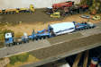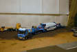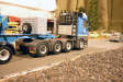 als Zugmaschine, aufgesattelt ist ein vierachs Jeepdolly und als Nachläufer der