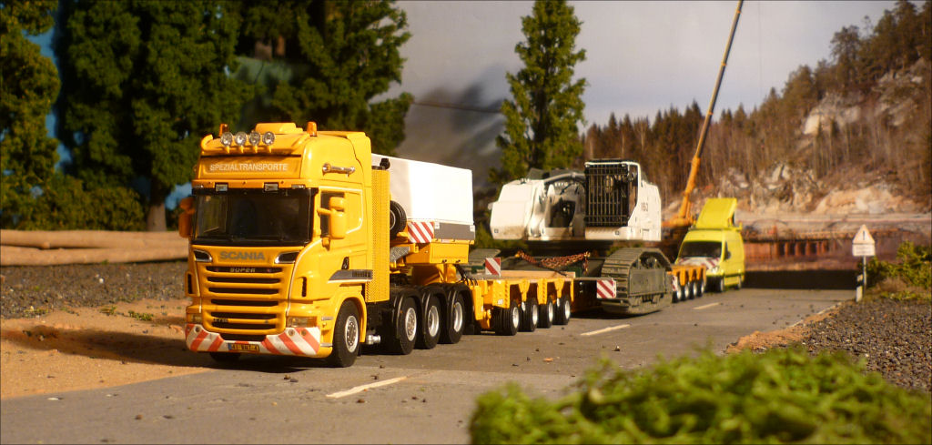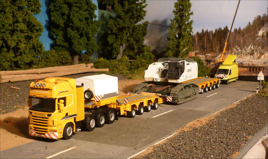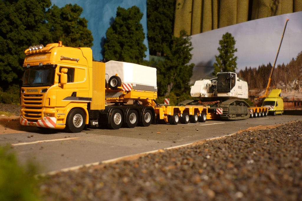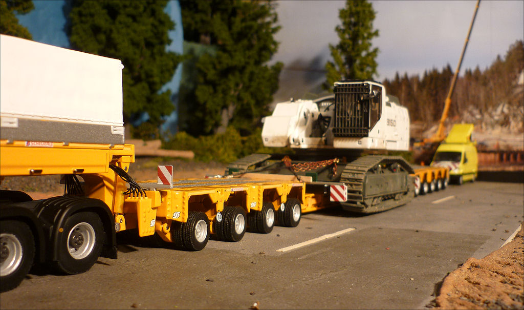 Schon als das Modell angekündigt wurde, reizte es mich den Transport eines solchen Baggers darzustellen.