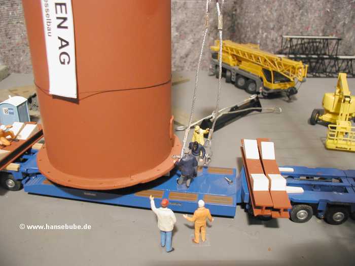 Nun werden die Anschlagmittel des Nachführkranes gelöst