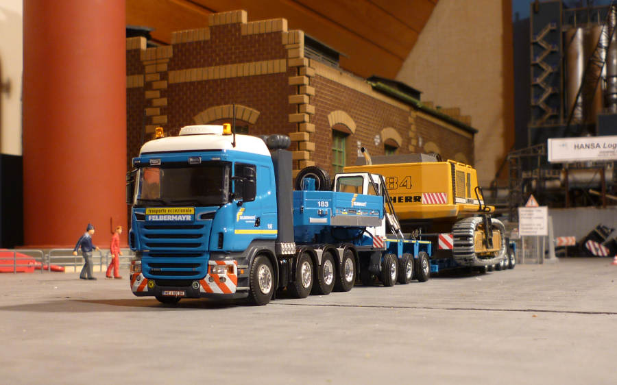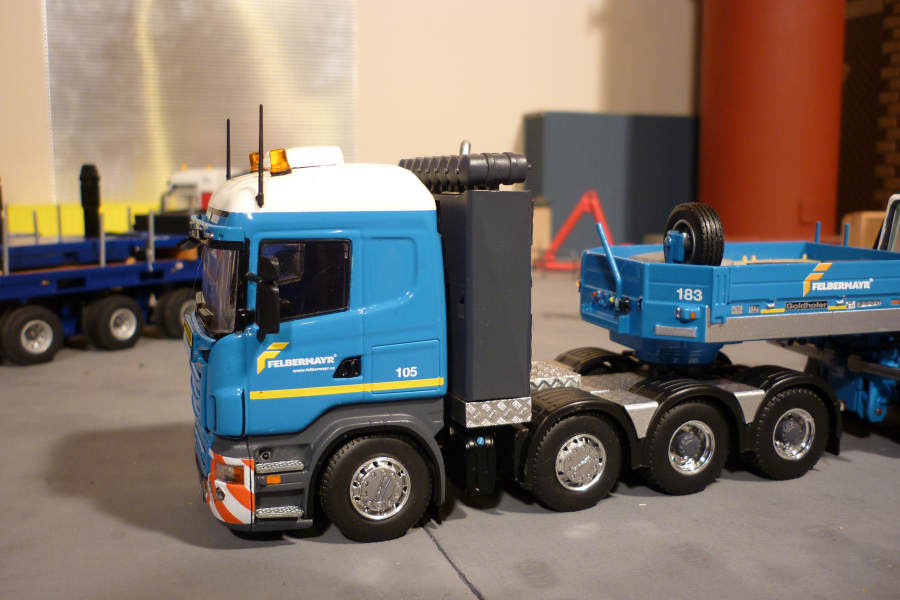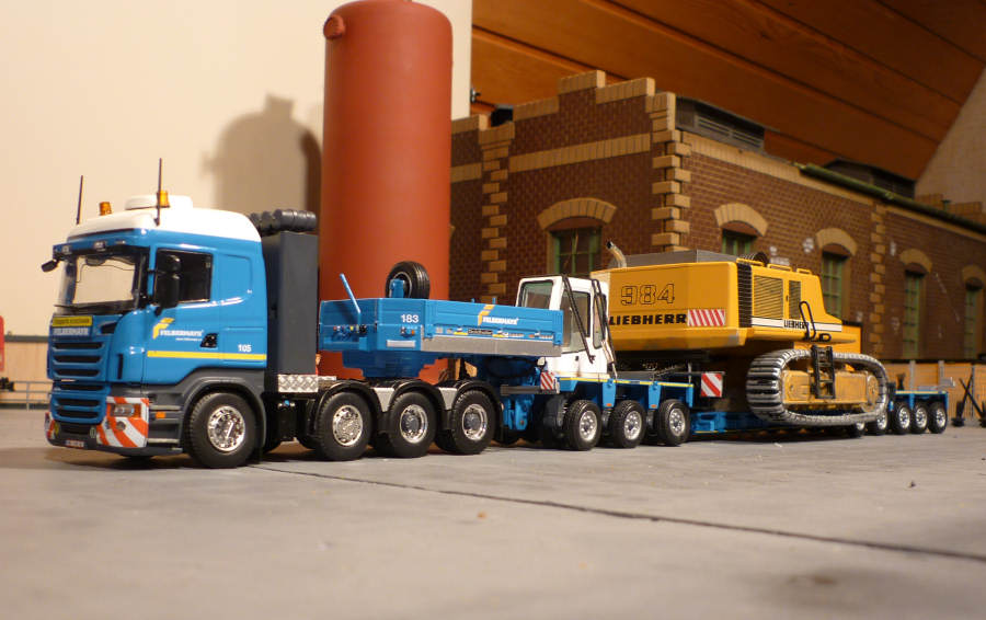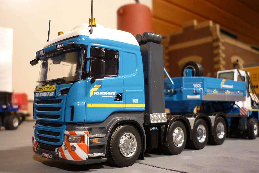 Im Dezember 2013 lieferte Tekno das lang erwartete Modell der Scania R 560 8x4 mit Goldhofer 3/5 Tieflader