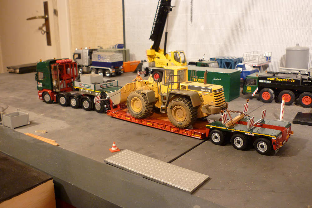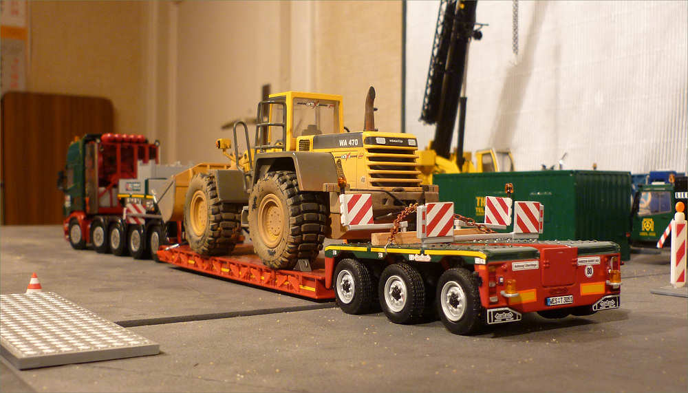 Scania R 620 10x4 mit Nooteboom Euro PX 0+3 Tieflader Kahl Transport Komatsu WA 470 Radlader