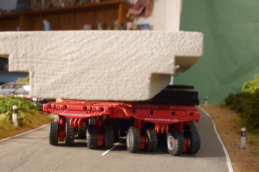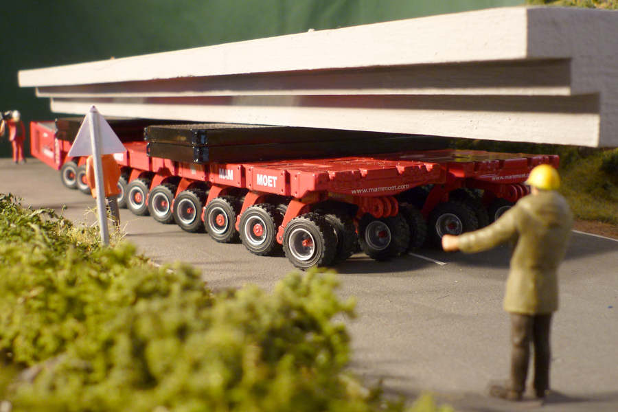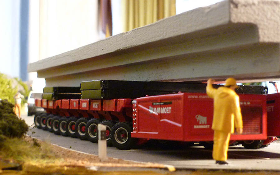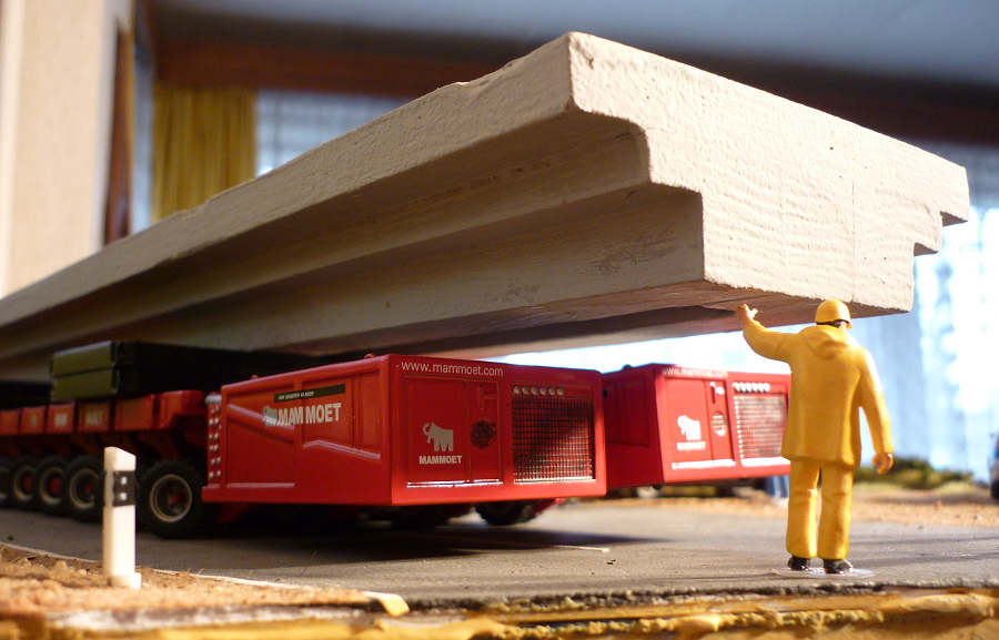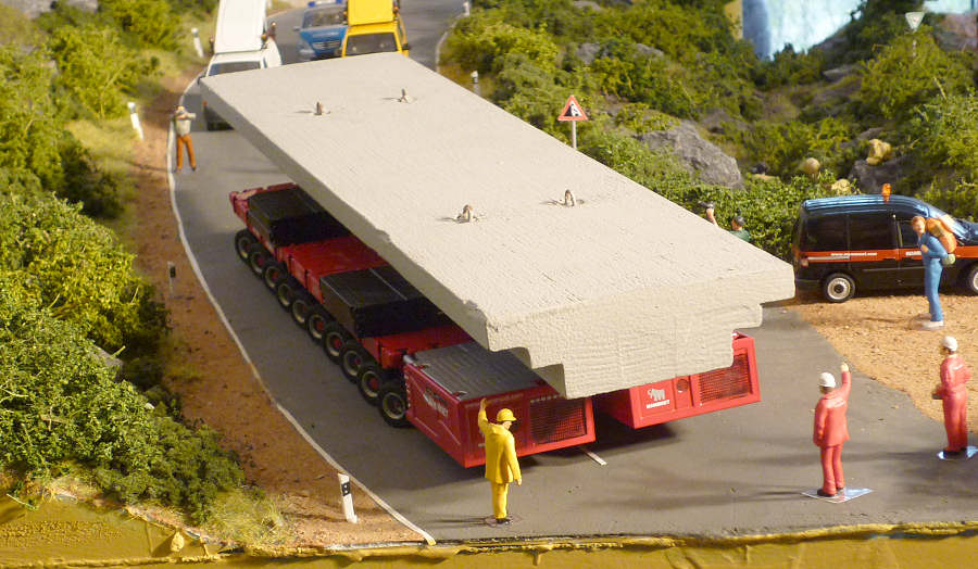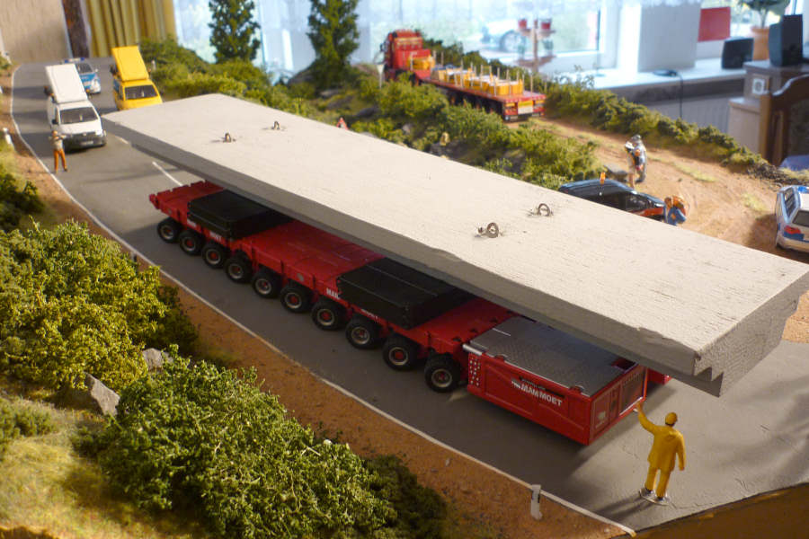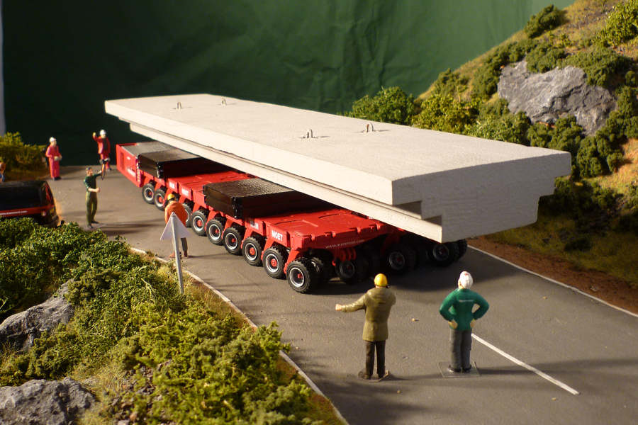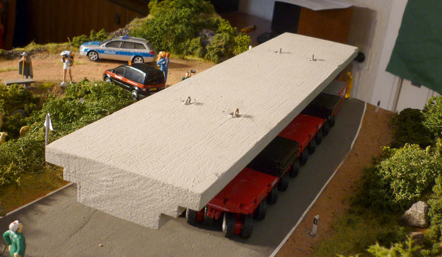 Selbstfahrer mit schweren Lasten, Transport eines Beton Brückenteiles