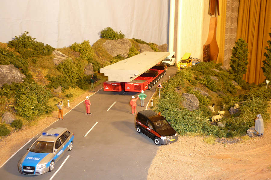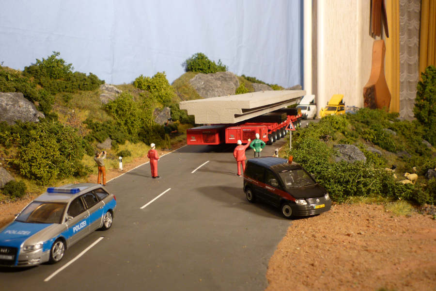 Der Transport befindet sich irgendwo zwischen einem Vormontageplatz und einer Baustelle.