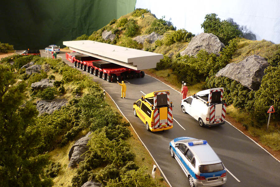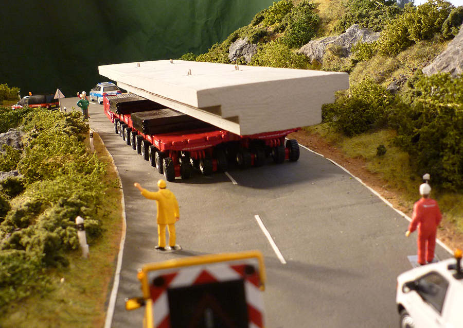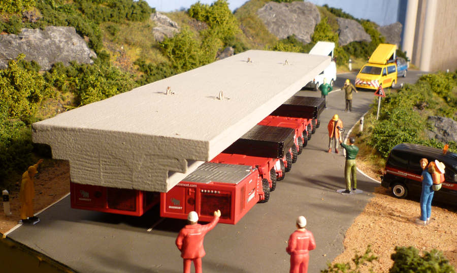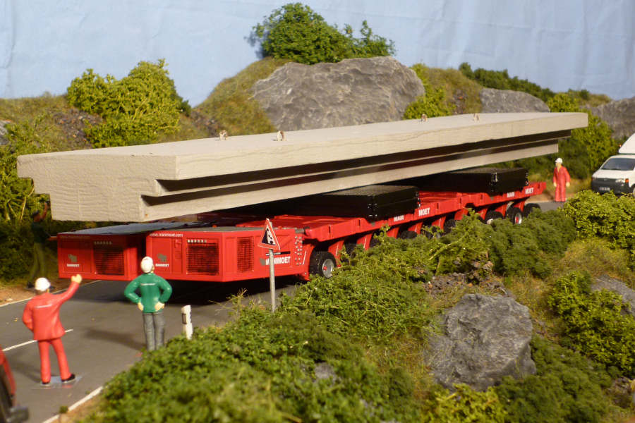 Selbstfahrer mit schweren Lasten, Transport eines Beton Brückenteiles