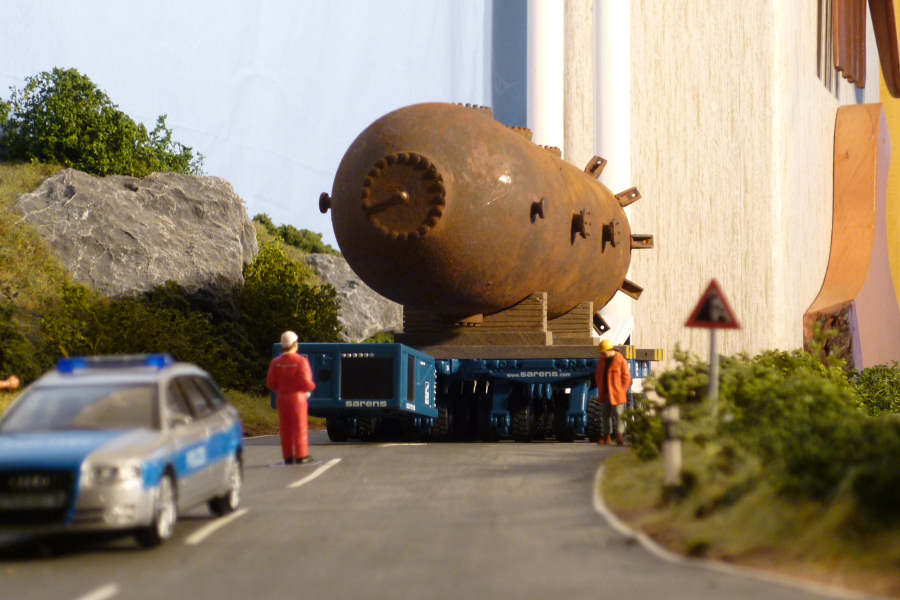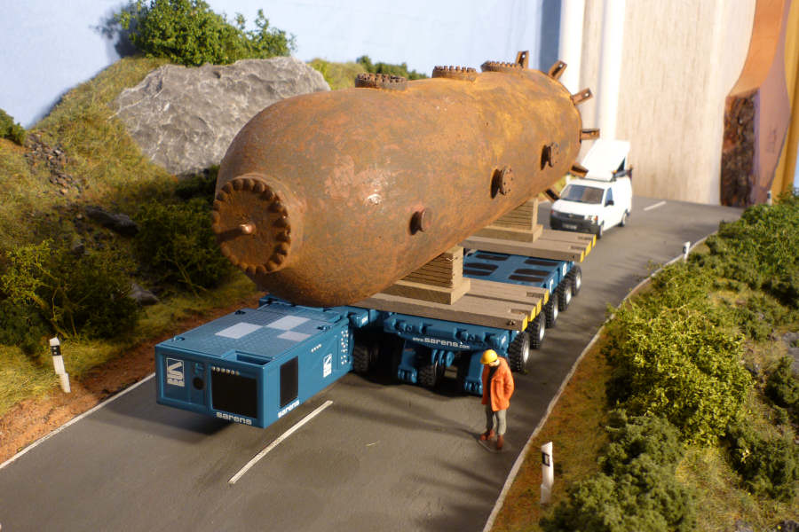 Selbstfahrer mit schweren Lasten, Transport eines Druckbehälters