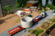 Der Tieflader ist auszieh- und verbreiterbar, Holzbohlenimitate liegen bei, Verbreiterungstafeln ebenso.